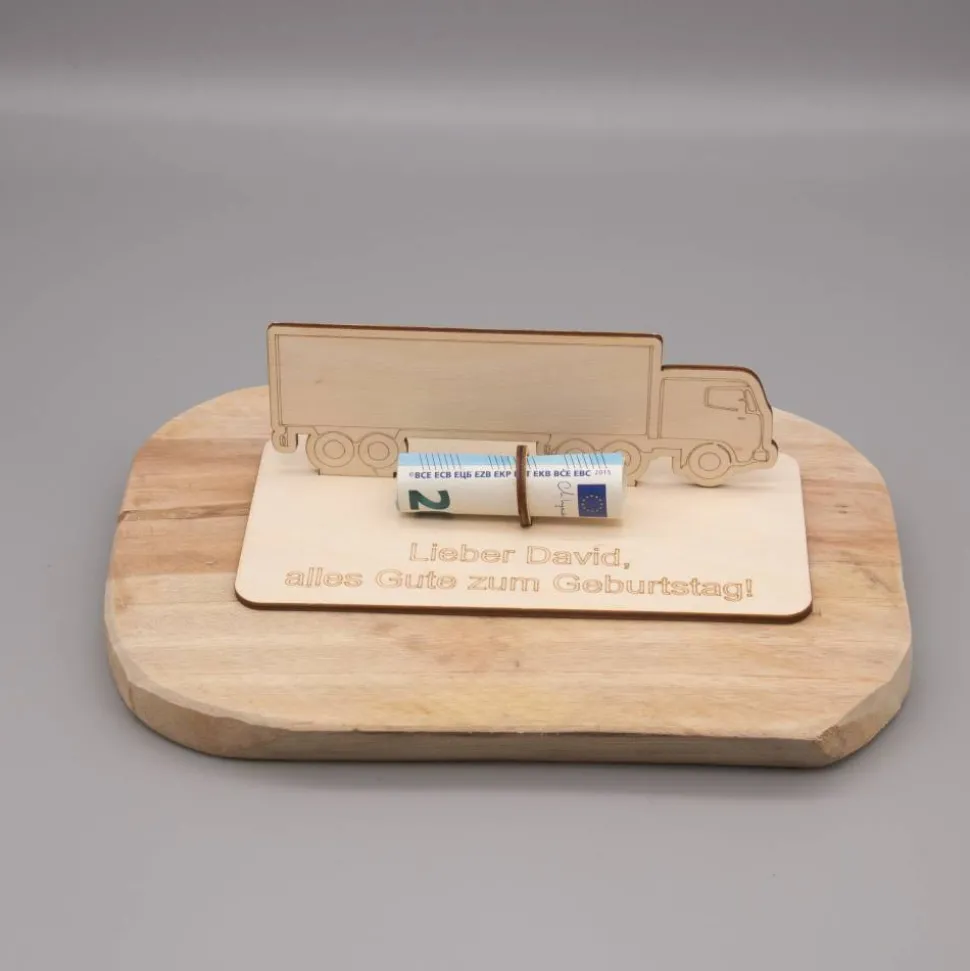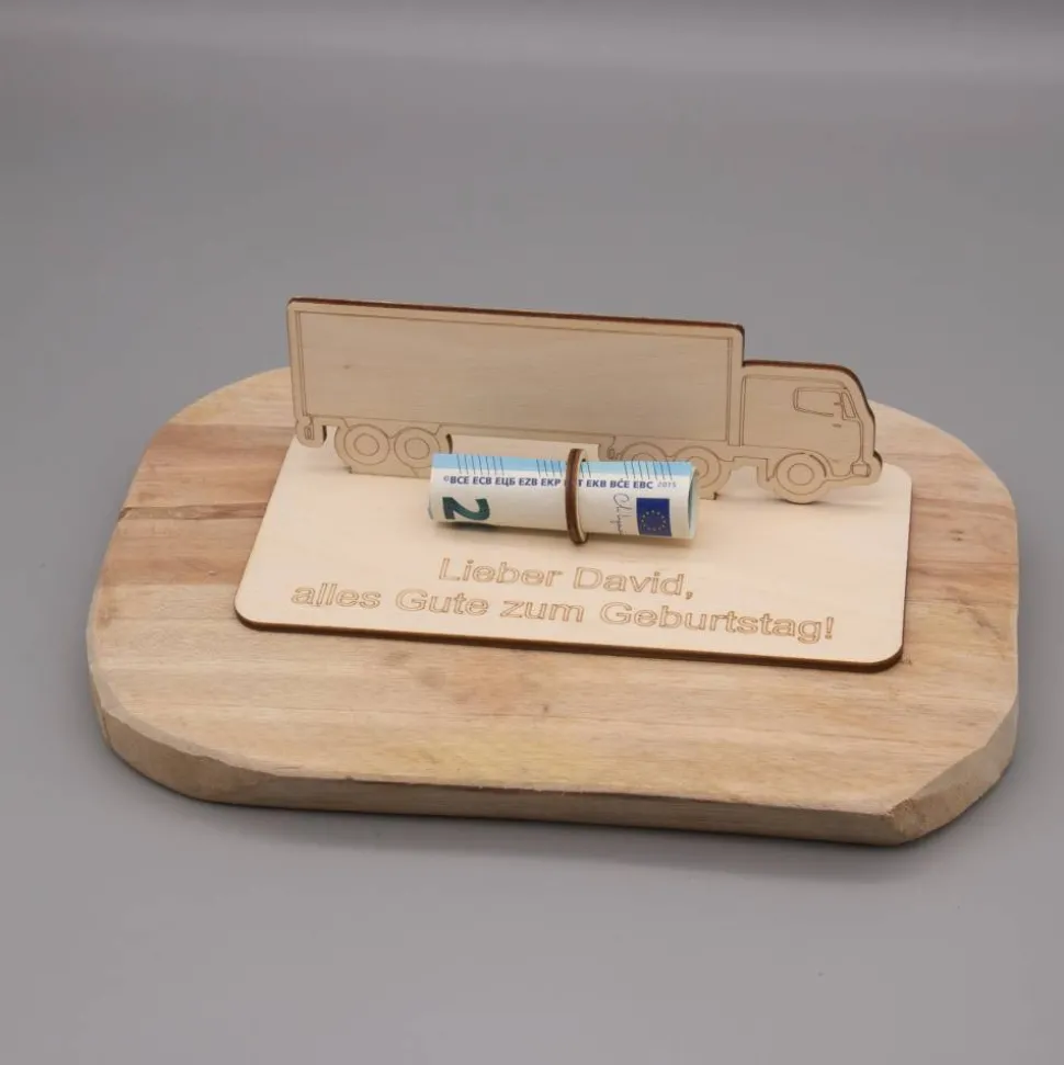 Geldgeschenk LKW - aus Holz personalisiert
