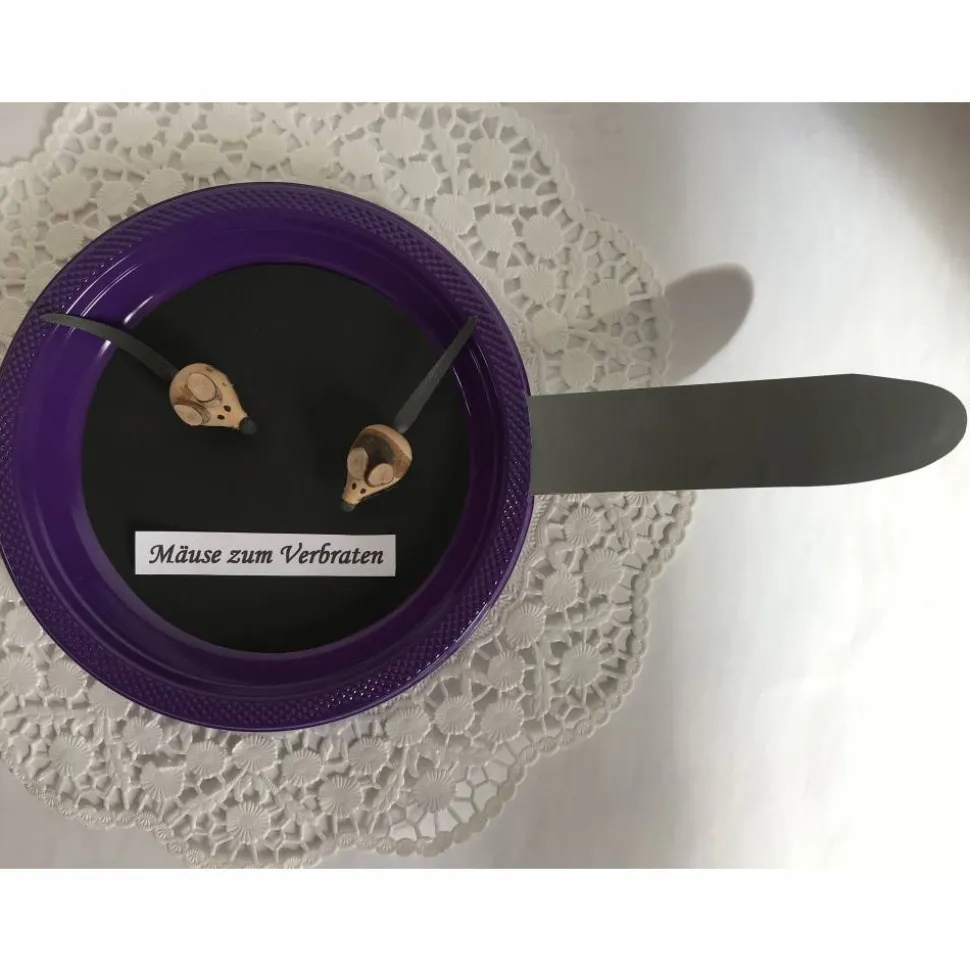– Schild „Mäuse zum Verbraten“ Gerne kann auch ein anderer Text aufgedruckt werden. Geben Sie den Alternativtext bitte einfach im Bestellvorgang an. Auch eine direkte Kontaktaufnahme ist möglich.