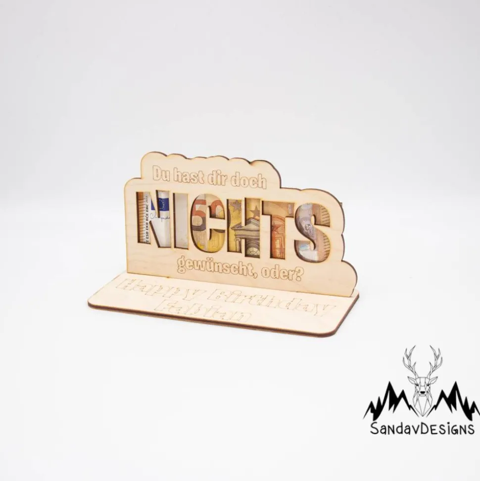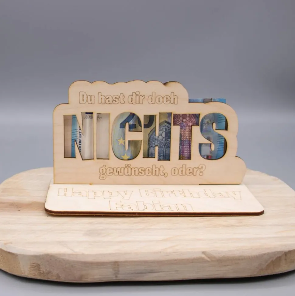 Geldgeschenk Nichts – aus Holz personalisiert