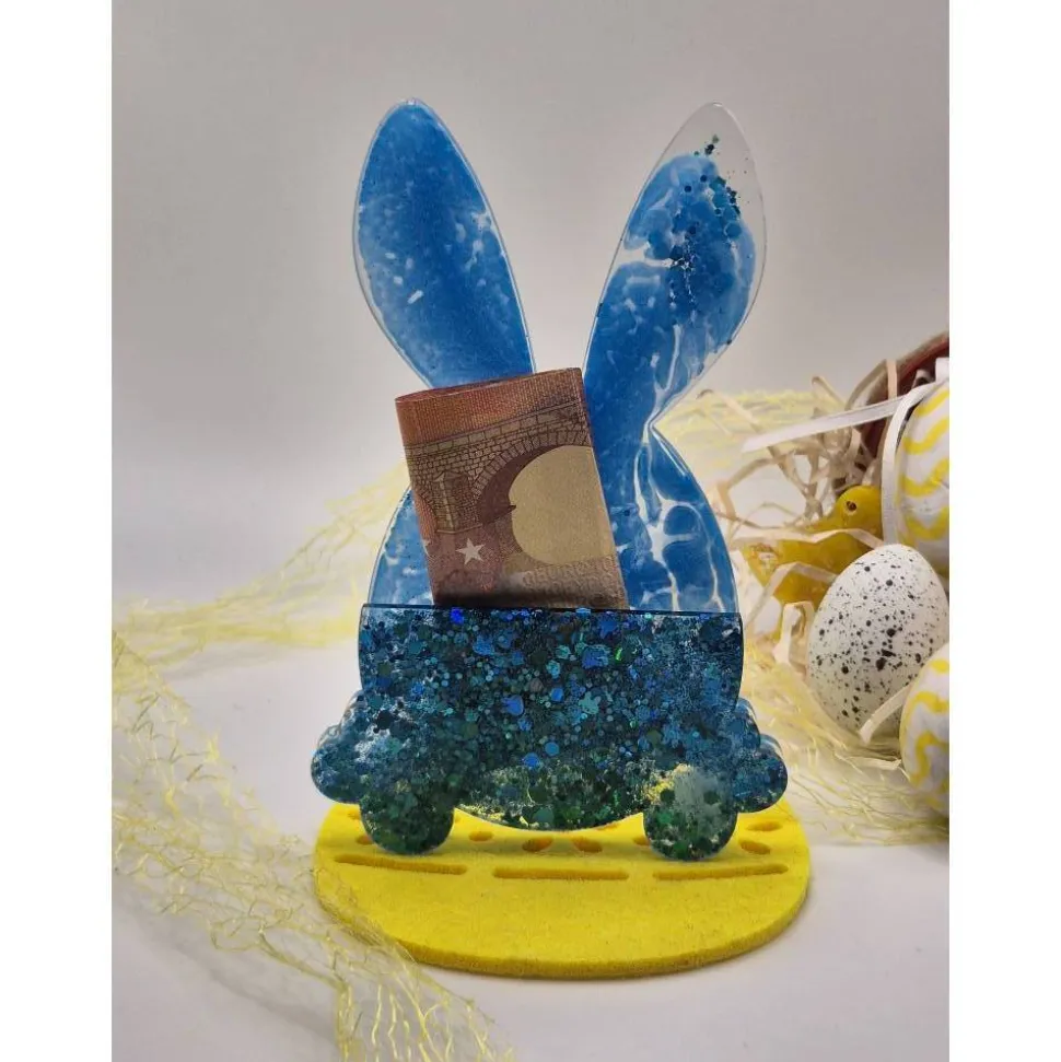 Moderne Geschenk Idee für Ostern, Aufsteller Hase für Geld oder Gutschein (der Abgebildete Geldschein dient nur als Beispiel und ist nicht in der Bestellung enthalten)
