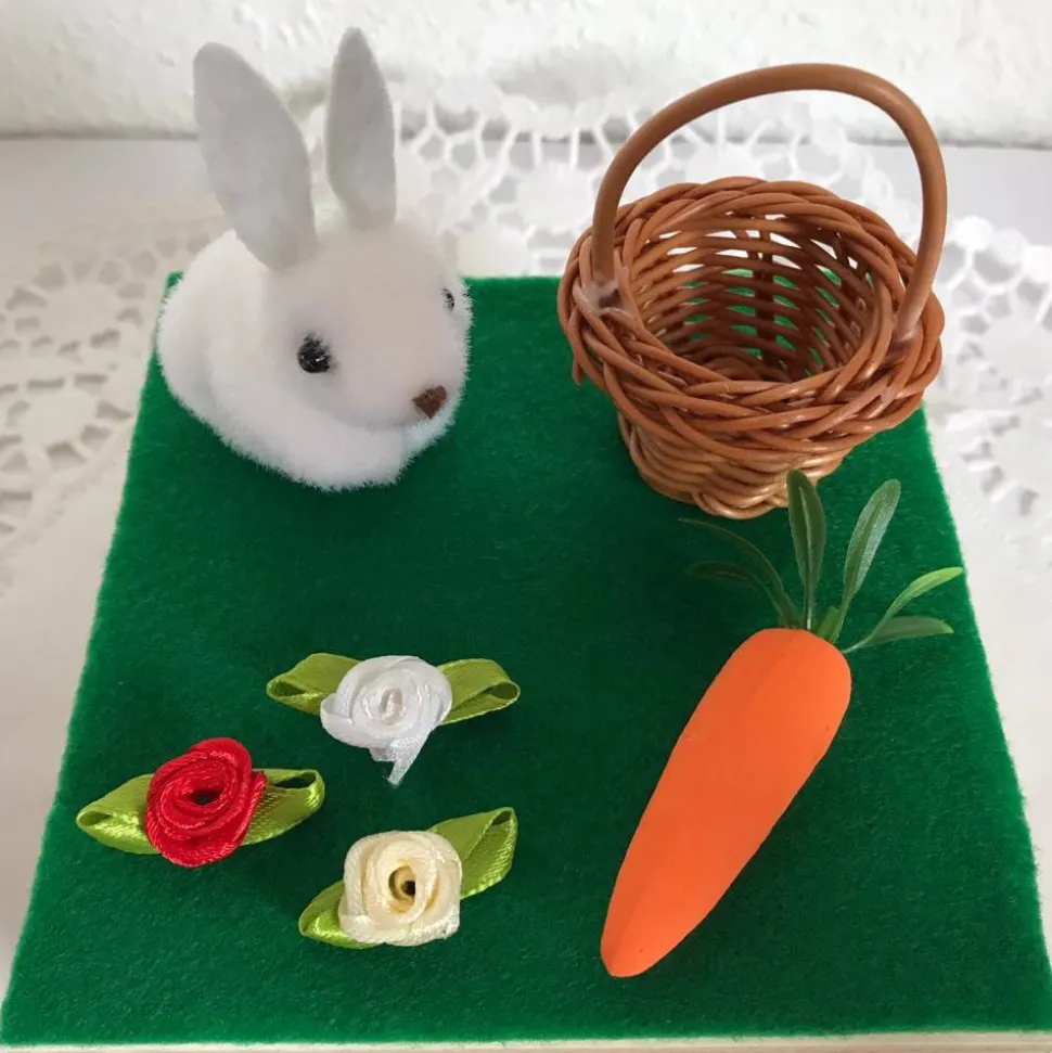 Geld verschenken zu Ostern ist mit diesem liebevoll gestalteten Geldgeschenk ein echter Blickfang. Der weiße flauschige Osterhase sitzt auf der grünen Wiese neben dem Osterkorb, in den Sie nach Belieben sogar noch ein paar kleine Ostereier packen können. Abgerundet wird die Szene durch hübsche Röschen und eine Karotte.