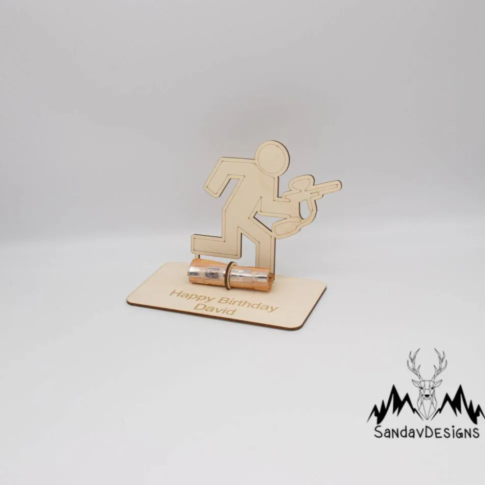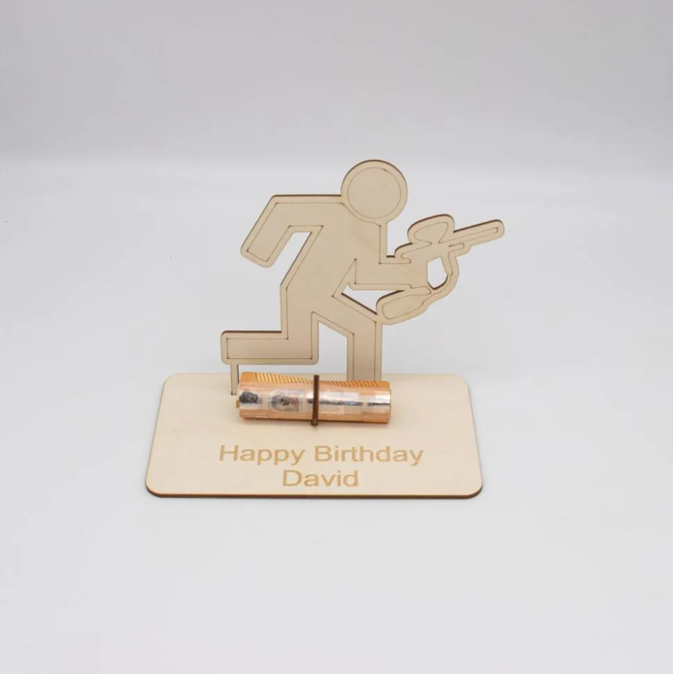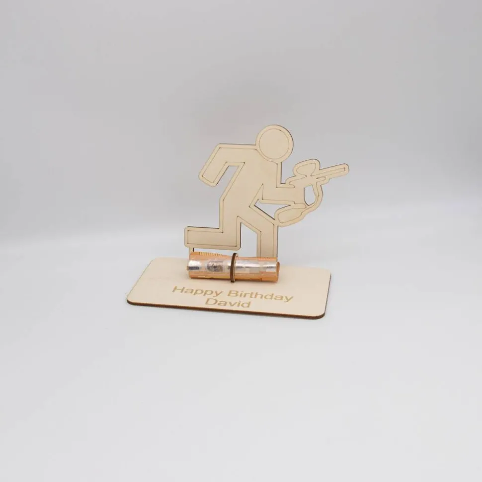 Bestellen Sie jetzt und schenken Sie etwas, das nicht nur einzigartig und persönlich, sondern auch ein Zeichen von Wertschätzung und Gedanken ist. Mit diesem personalisierten Geldgeschenk aus Birkensperrholz – Paintballspieler-Motiv überraschen Sie garantiert!