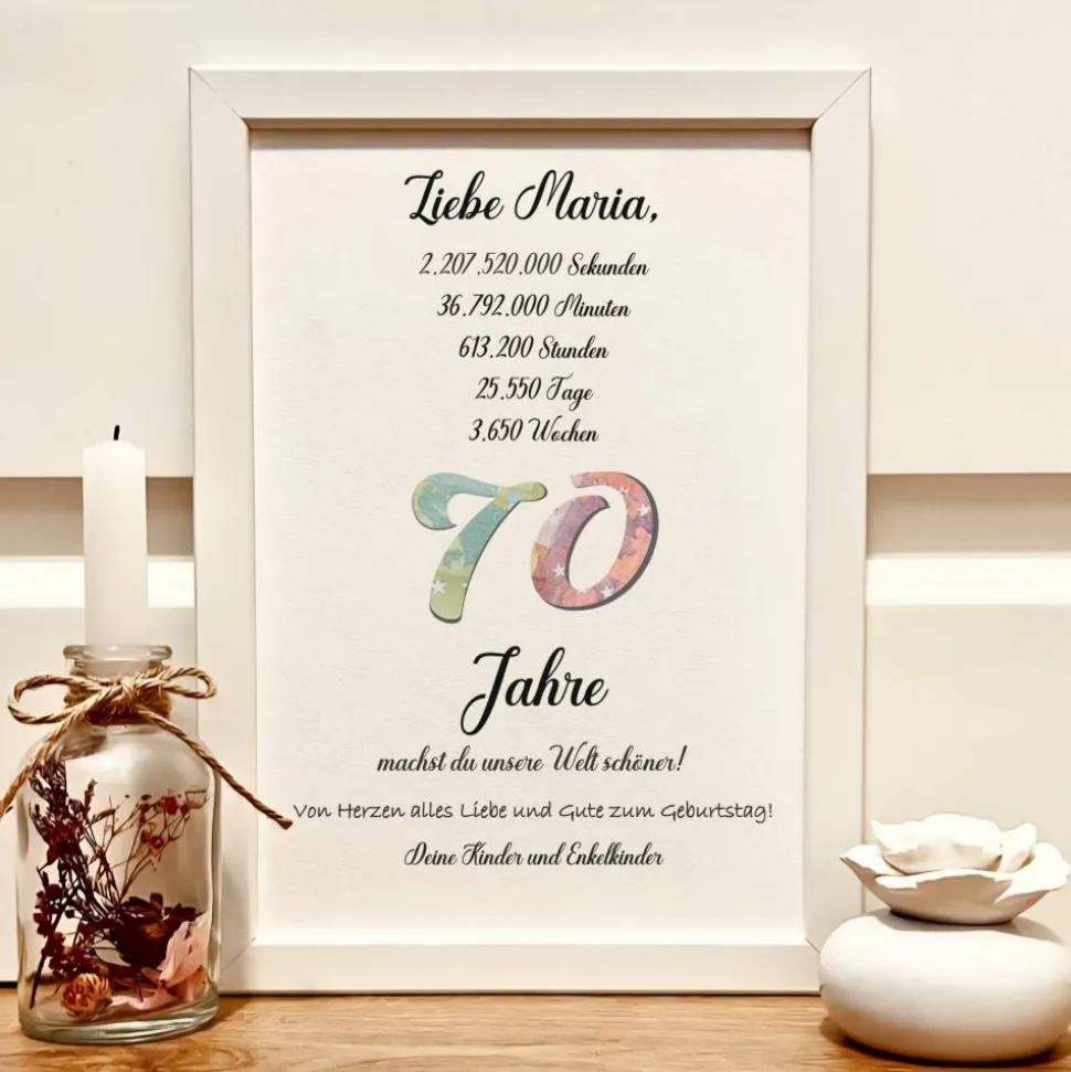 Überrasche zum 70. Geburtstag mit einem personalisierten Geldgeschenk im stilvollen Bilderrahmen!