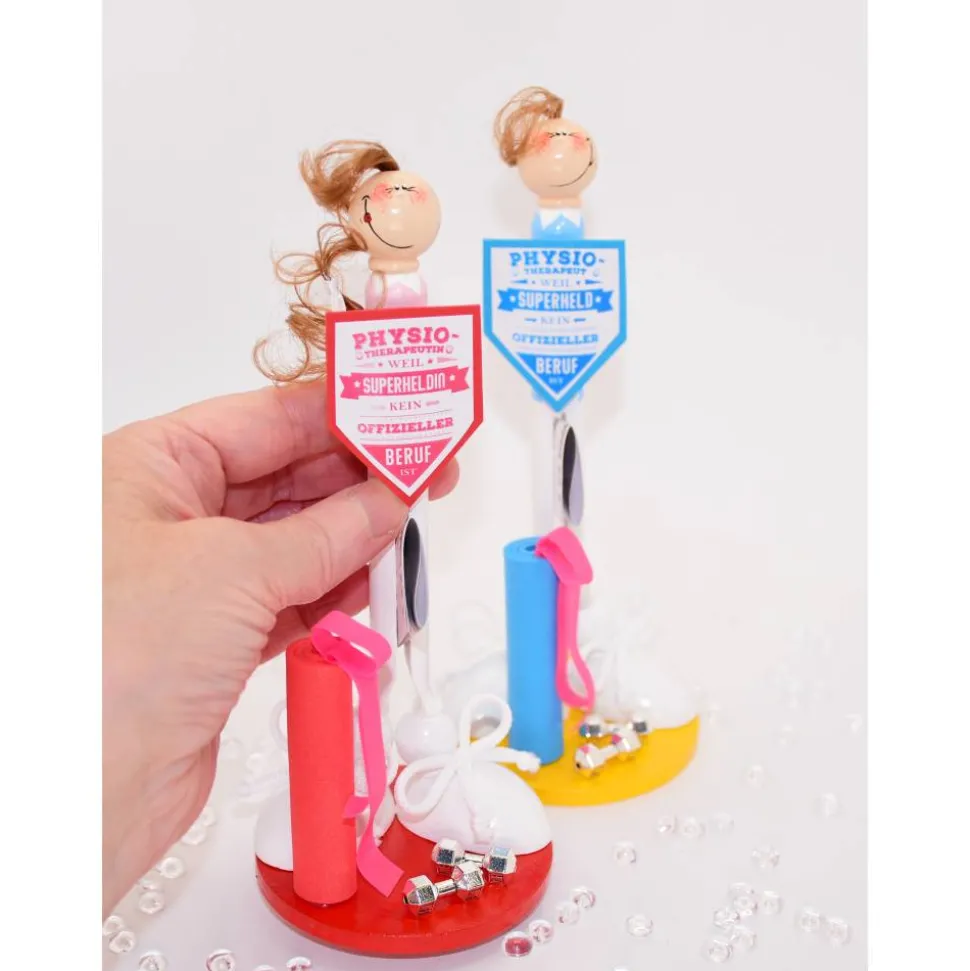 Du möchtest Geld verschenken, aber suchst nach einer kreativen Alternative zum Umschlag? Mit diesen liebevoll handgefertigten Figuren hast du das perfekte Geldgeschenk für einen Physiotherapeuten oder eine Physiotherapeutin. Falte einfach einen Geldschein und stecke ihn in die Figur – schon hast du ein einzigartiges Präsent, das garantiert Eindruck macht.