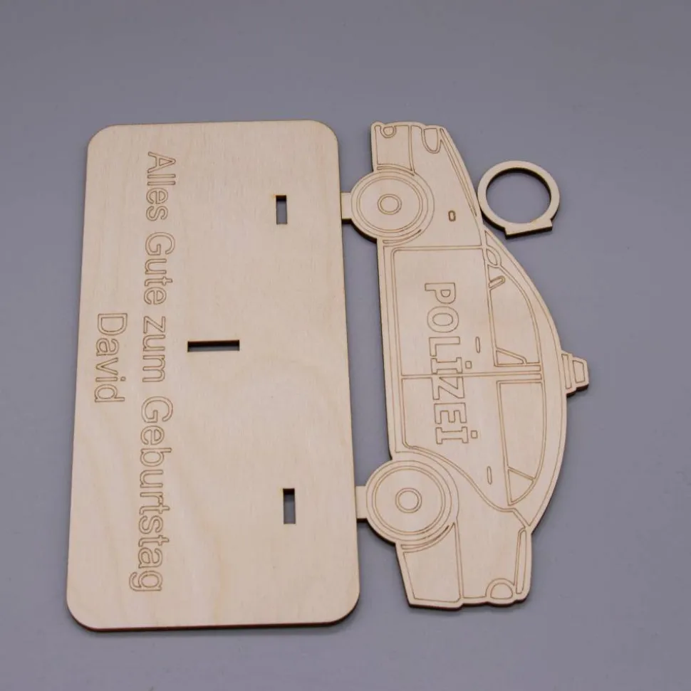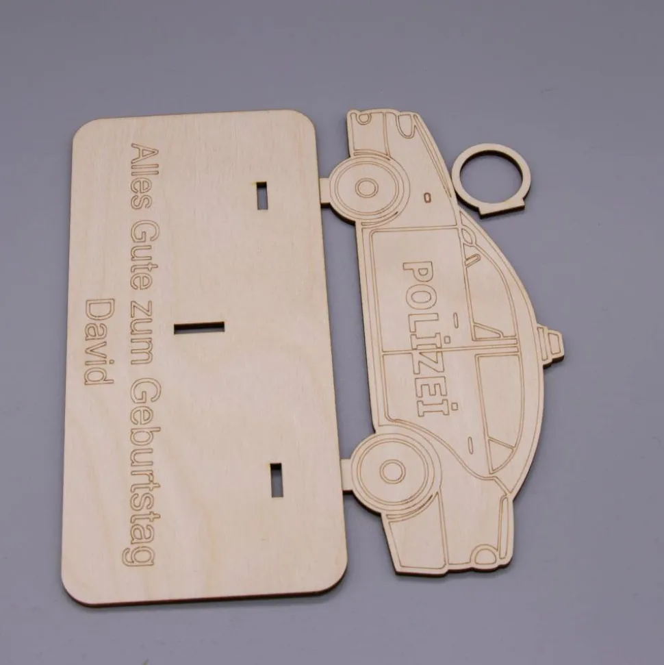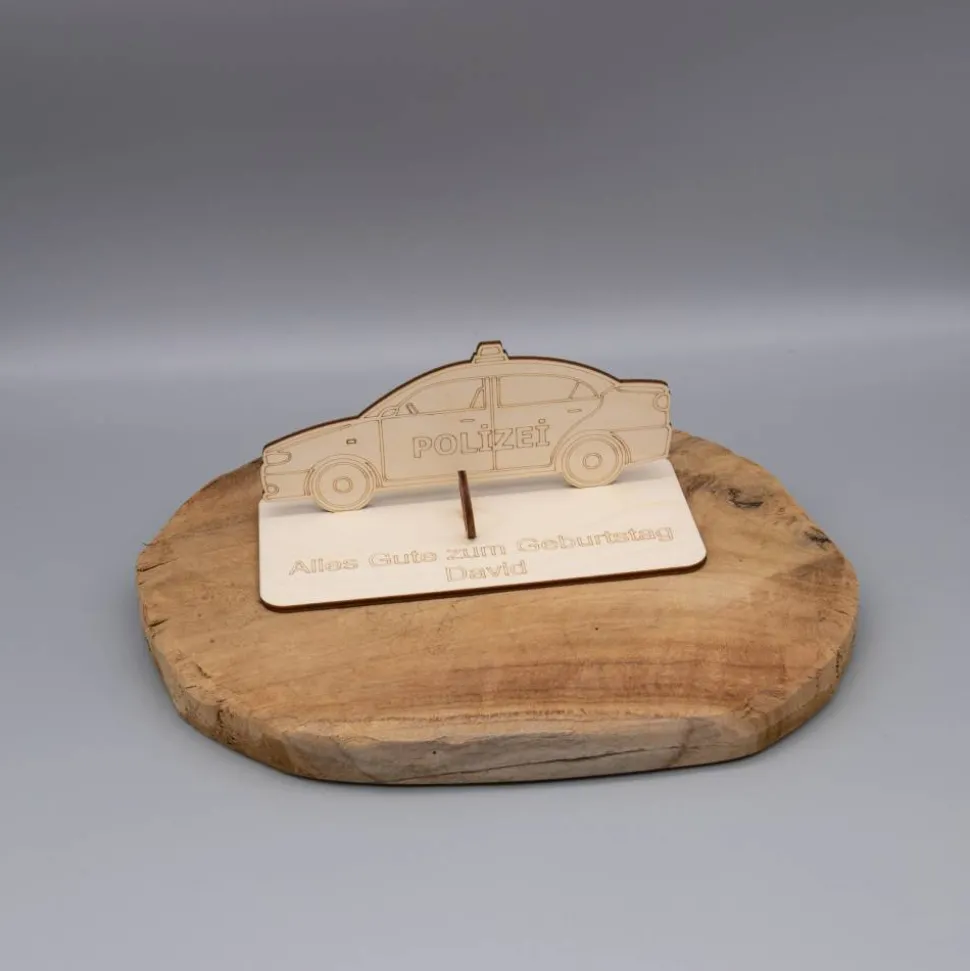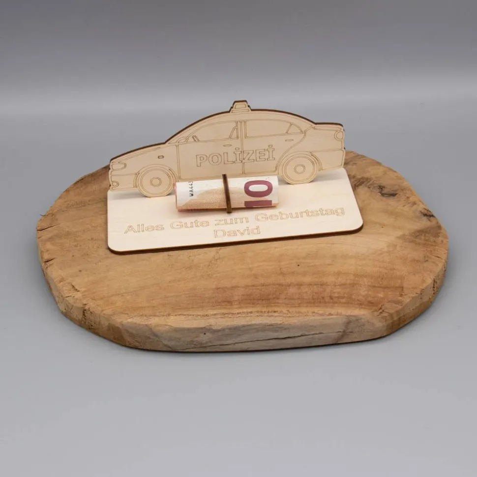 Geldgeschenk Polizeiauto – aus Holz personalisiert