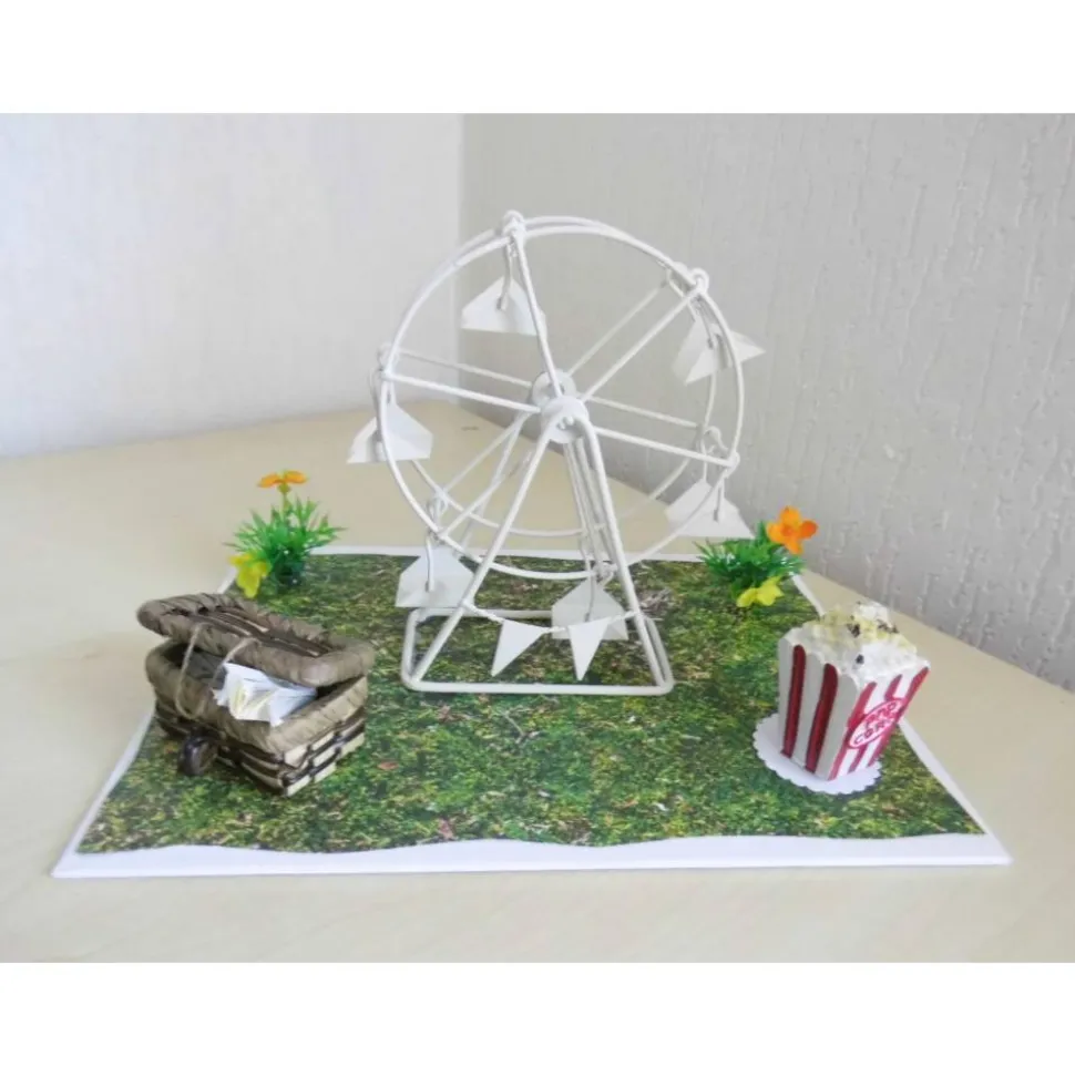 Der Geldschein kann ganz individuell im kleinen Picknickkoffer platziert oder auf einer der Gondeln des Riesenrades ausgestellt werden. Die Gondel-Plattformen bieten zusätzlich Platz für kleine Pralinen oder persönliche Dekorationen – lasse deiner Kreativität freien Lauf!