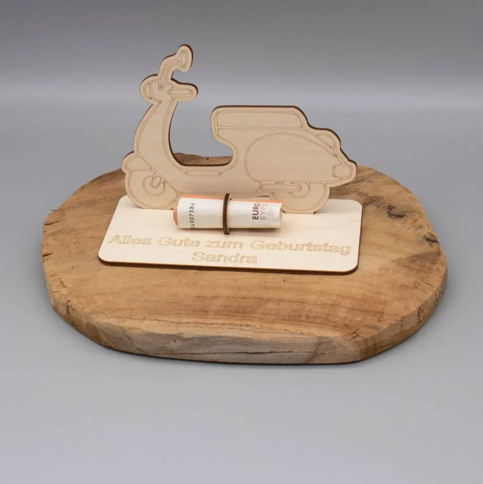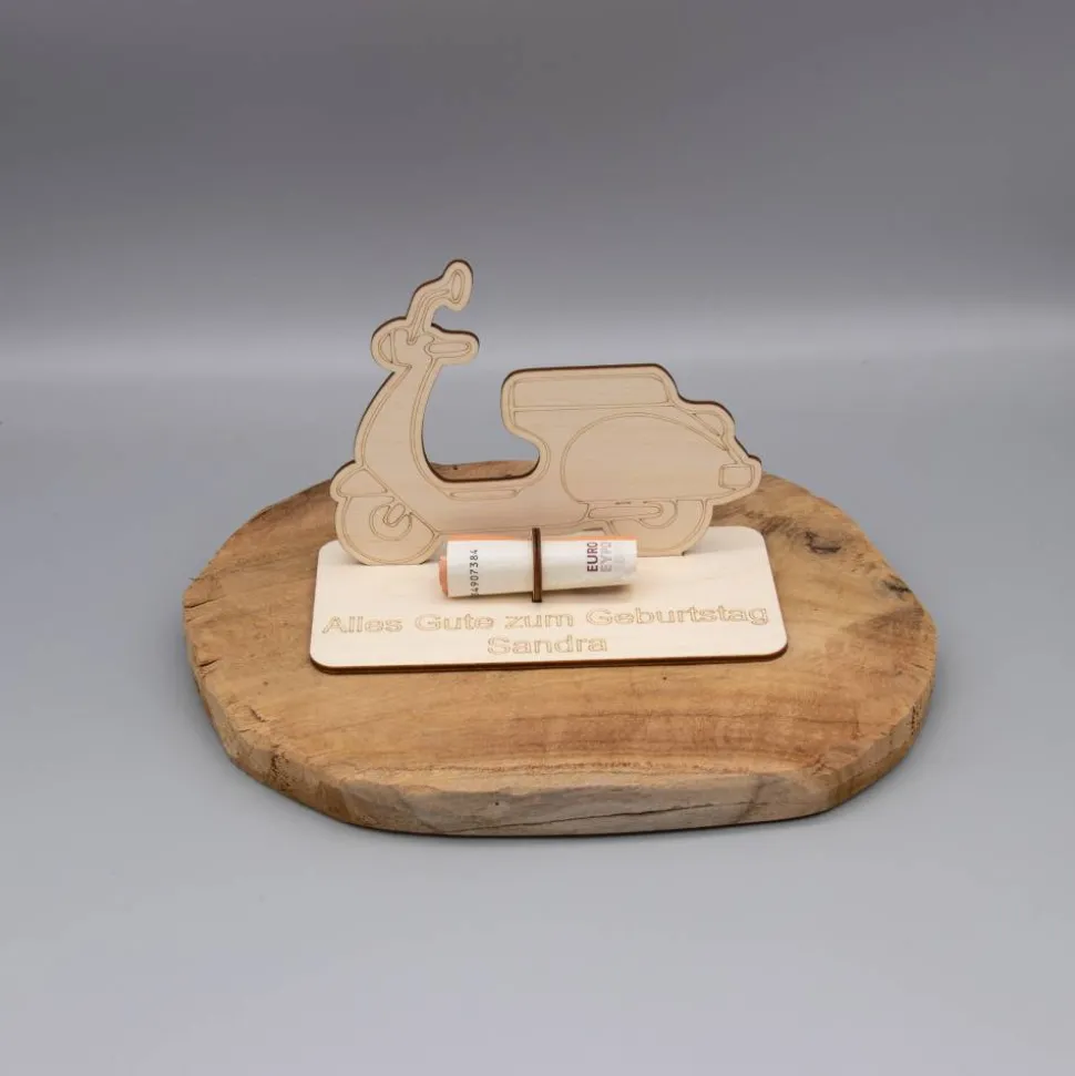 Unsere Lasergravurtechnologie ermöglicht es, kreative Designs, maßgeschneiderte Botschaften und persönliche Details auf das Holz zu übertragen. Dadurch wird jedes Geldgeschenk zu einem einzigartigen Unikat, das von Herzen kommt. Die Präzision der Gravur sorgt dafür, dass jedes Detail gestochen scharf und beeindruckend dargestellt wird.