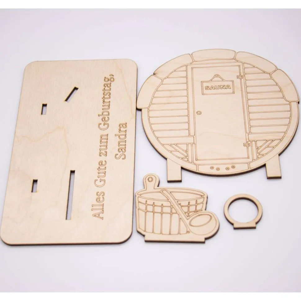 Geldgeschenk Sauna - aus Holz personalisiert