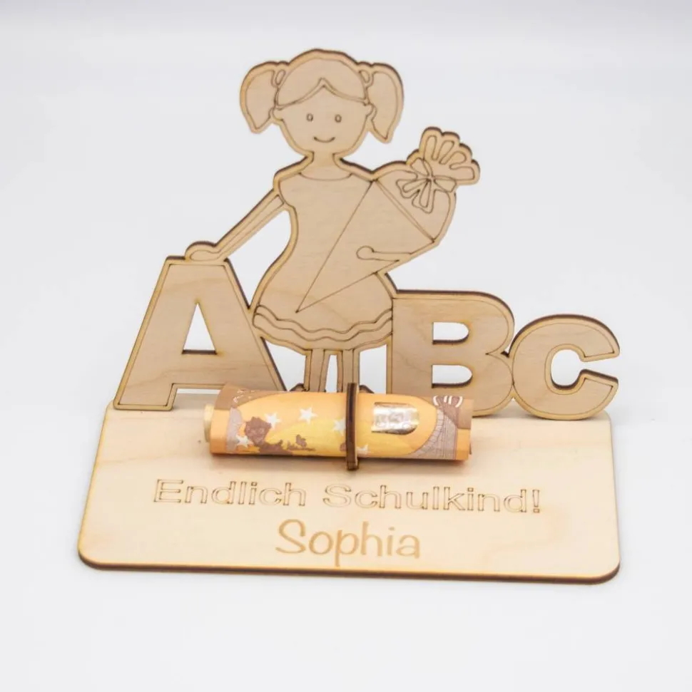Dieses einzigartige Geldgeschenk zum Schulstart ist die perfekte Möglichkeit, den Übergang Ihres Kindes in die Schule zu feiern. Es wird nicht nur eine dauerhafte Erinnerung an diesen besonderen Tag sein, sondern kann auch als Dekorationsstück in ihrem Zimmer dienen. Die natürliche Holztextur und das detaillierte Design fügen sich nahtlos in jede Raumdekoration ein.