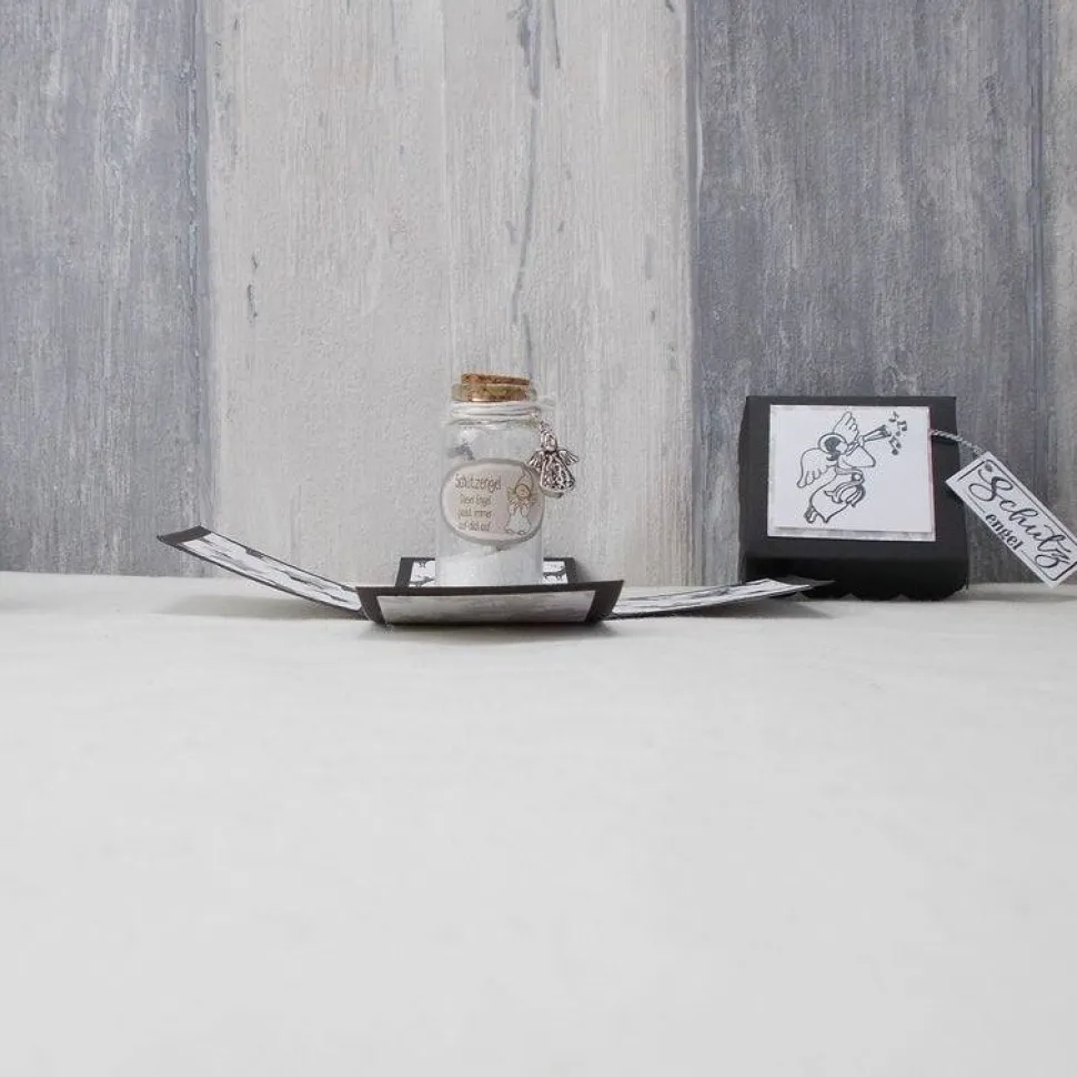 Außen am Glas ist noch ein süßer Tag und ein bezaubernder kleiner Engel befestigt.