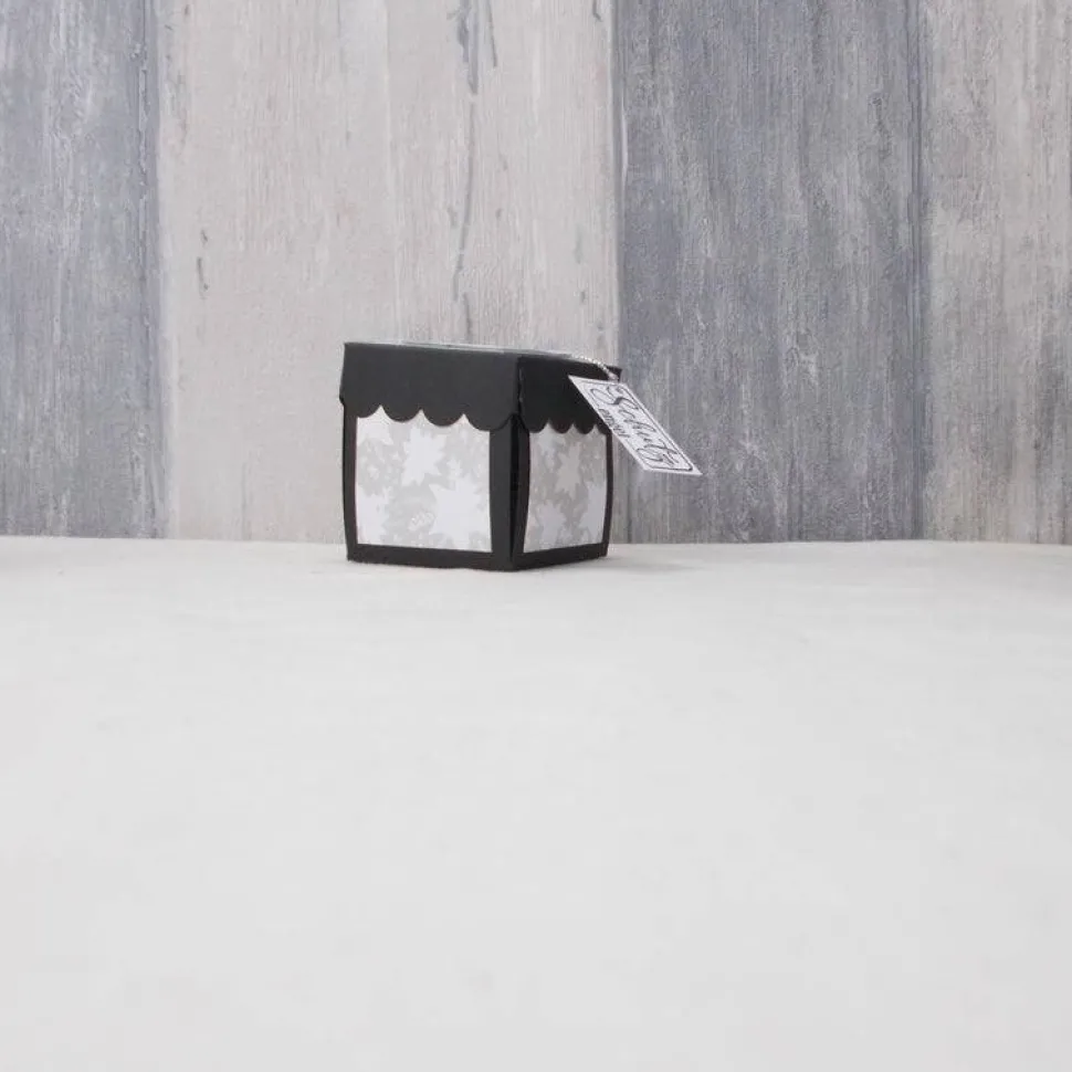 In der Mitte ist ein hübsches Wunschglas in dem ein Zettel ist, auf den Sie noch liebe Wünsche schreiben können, und feiner irisierender Glitter.