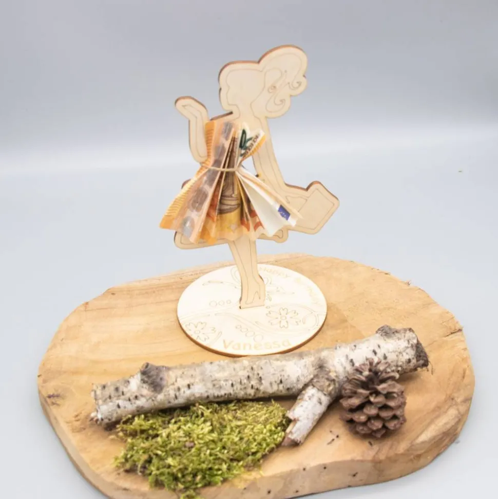 Unser Geldgeschenk aus 3 mm Birkensperrholz bietet nicht nur eine stilvolle Präsentation für Geldscheine, sondern kann auch als dekoratives Element in jedem Zuhause dienen. Es kann an der Wand aufgehängt oder auf einem Regal platziert werden, um eine wunderbare Erinnerung an den besonderen Anlass zu schaffen.