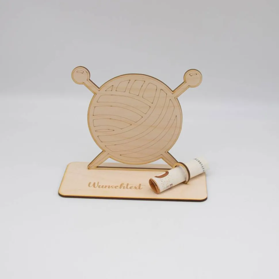 Geldgeschenk Stricken – aus Holz personalisiert