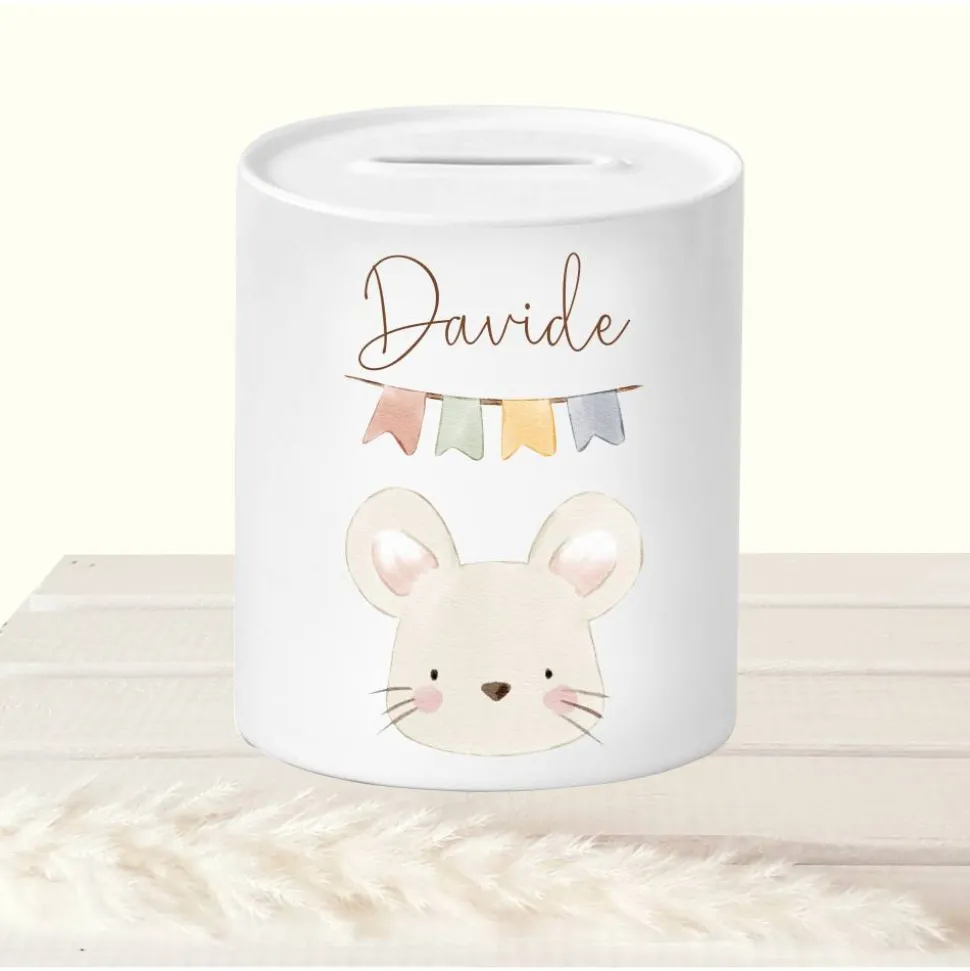 Verziert wurde die Spardose mit niedlichen Tieren wie Bär, Maus, Frosch, Hase, Fuchs Elefant u.v.m.