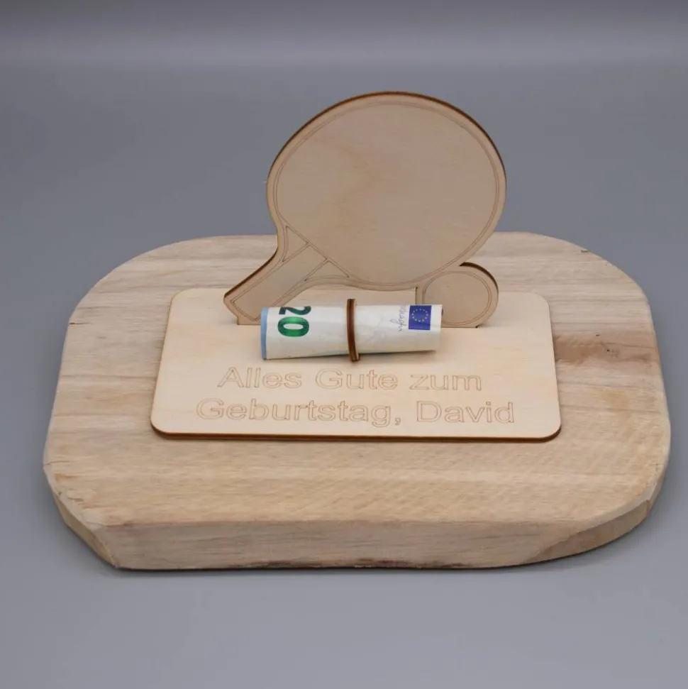 Geldgeschenk TIschtennis – aus Holz personalisiert