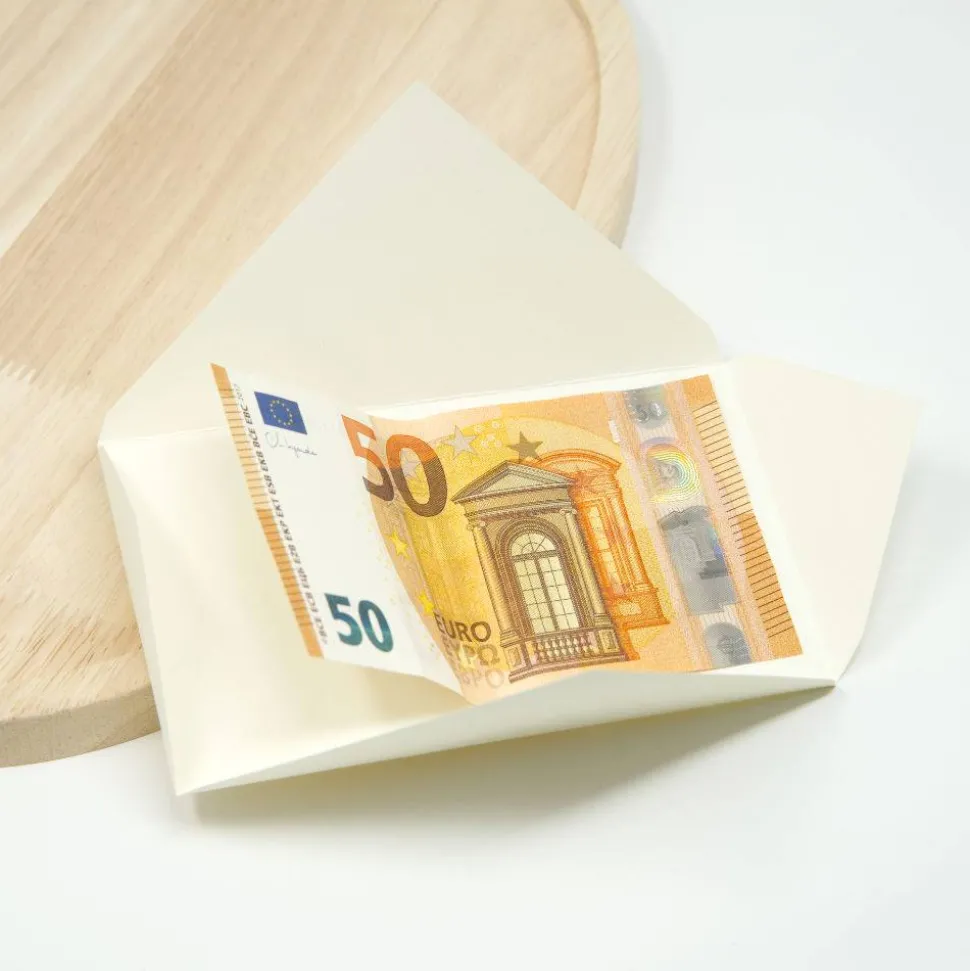Ein Geldgeschenk zur Hochzeit, das so aussieht, als hätte man sich wirklich Gedanken gemacht. Weil man das auch hat. Dieses Set besteht aus einem Umschlag, einer Banderole, einem Wachssiegel mit Schwertlilien-Motiv und einem personalisierten Holzblume mit Lasergravur. Alles ist handgemacht und wird mit den Namen des Brautpaares sowie dem Hochzeitsdatum graviert. Der Umschlag ist für einen 50-Euro-Schein konzipiert (Geldschein ist nicht Teil des Produktes).
