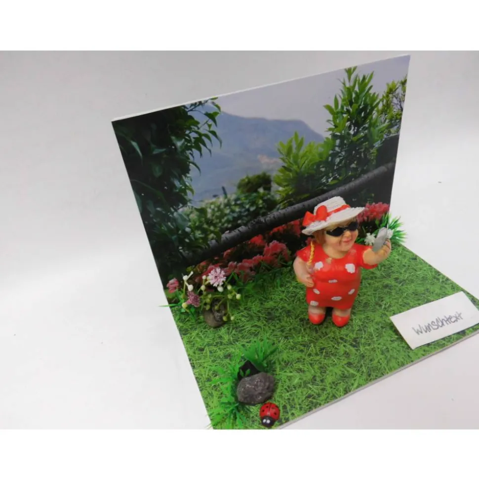 Als Basis dient ein Malkarton, auf den Motivpapier geklebt wurde. Das Hintergrundfoto – ein privates Familienbild mit fantastischer Aussicht – verleiht dem Geschenk eine persönliche Note. Die liebevolle Deko aus Polyresin macht das Ensemble zum Hingucker. Du kannst auf Wunsch einen individuellen Text anbringen lassen, um das Geldgeschenk noch persönlicher zu gestalten.