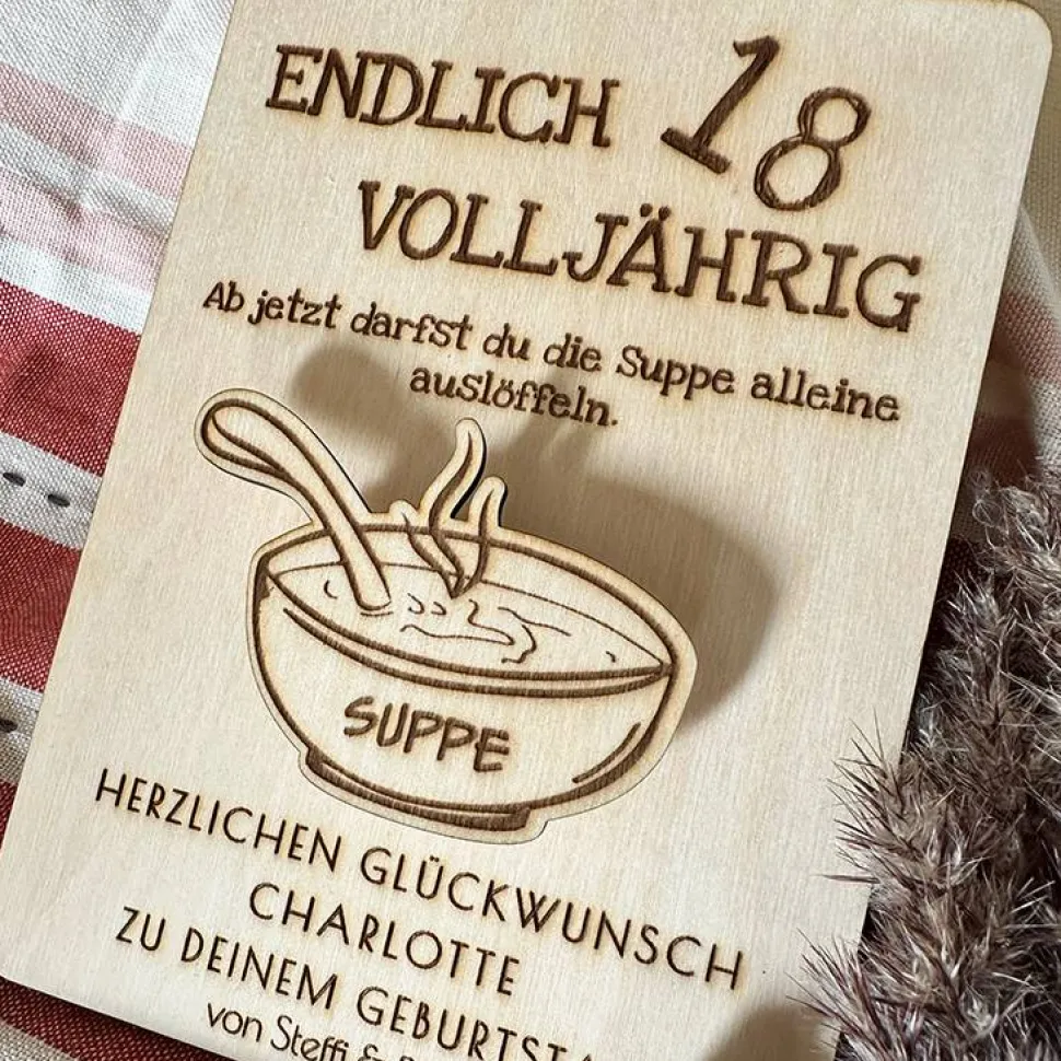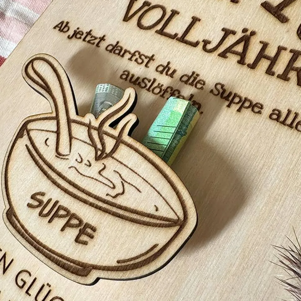 Die Holzkarte ist eine wunderschöne Möglichkeit Geldscheine zu überreichen und eine einzigartige Erinnerung für das Geburtstagskind.