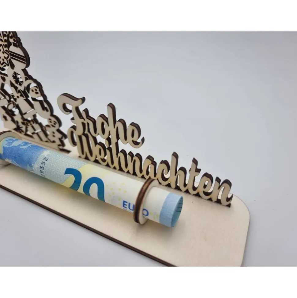 Der/die Geldscheine oder auch Gutscheine können einfach zusammengerollt durch die runden Geldscheinhalter gesteckt werden.