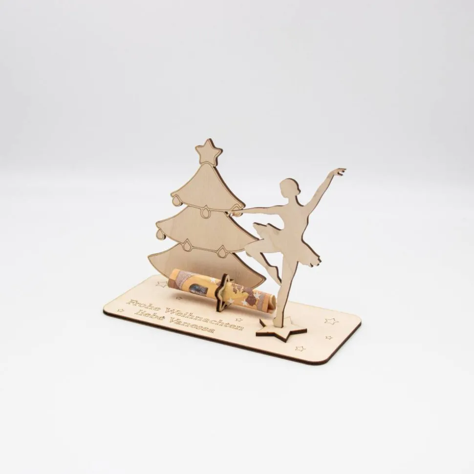 Geldgeschenk Weihnachtsballerina – aus Holz personalisiert
