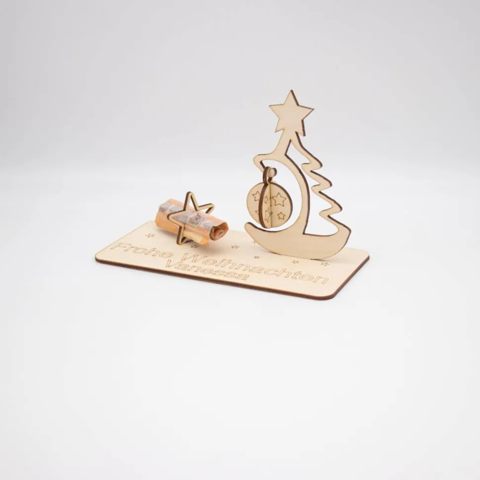 Unser Geldgeschenk aus 3 mm Birkensperrholz bietet nicht nur eine stilvolle Präsentation für Geldscheine, sondern kann auch als dekoratives Element in jedem Zuhause dienen. Es kann an der Wand aufgehängt oder auf einem Regal platziert werden, um eine wunderbare Erinnerung an den besonderen Anlass zu schaffen.