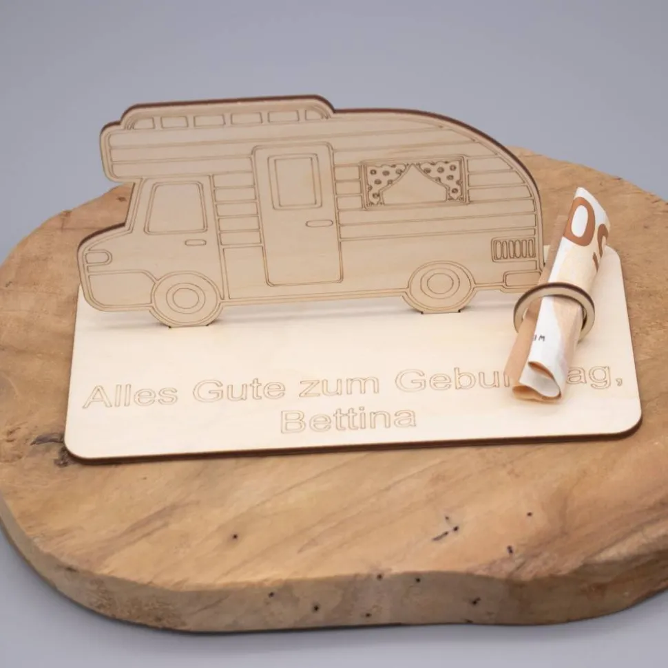 Geldgeschenk Wohnmobil – aus Holz personalisiert