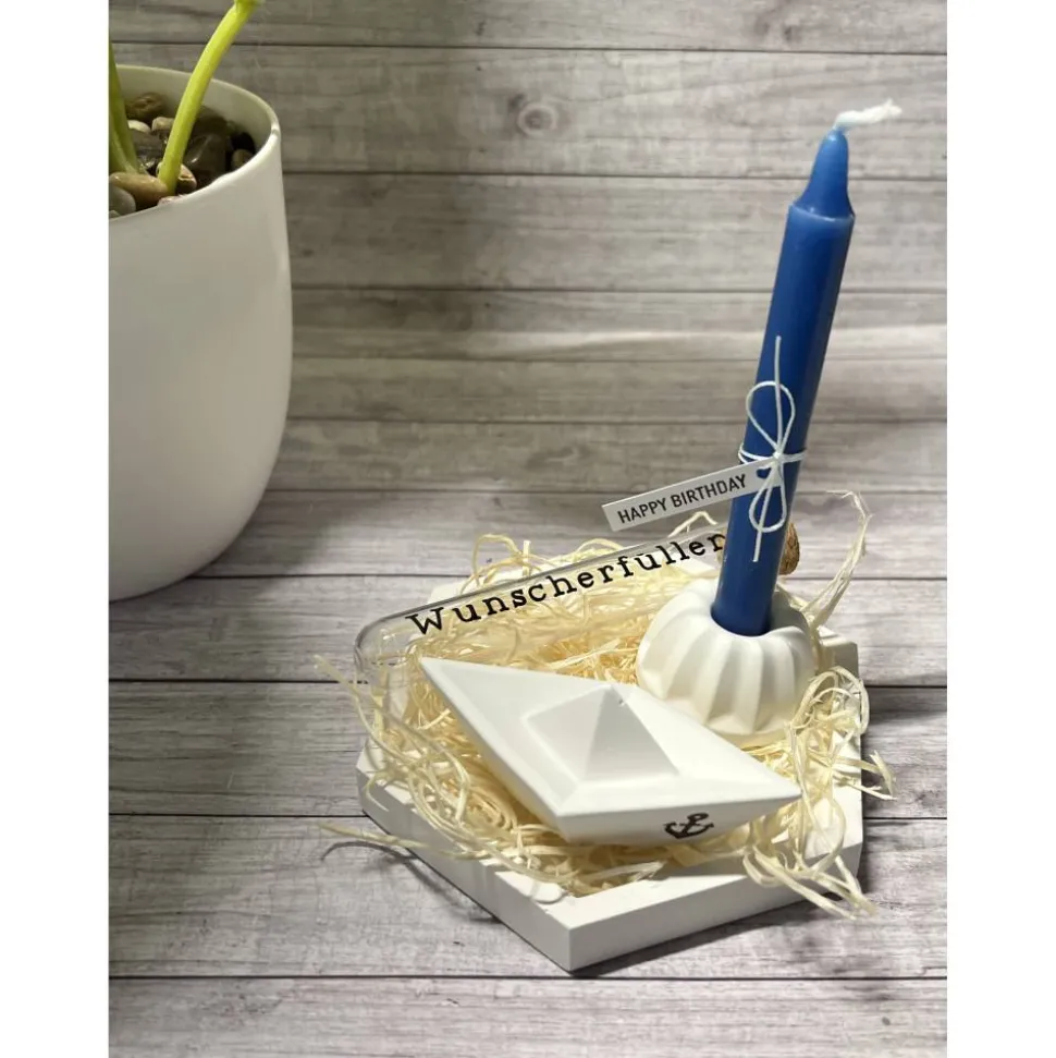 Eine schönes Geschenk, welches nachher komplett als Dekoration dienen kann. Dadurch das die Deko Elemente in weiß gehalten sind, sind sie zeitlos und passen sich jeder Homedeko an.
