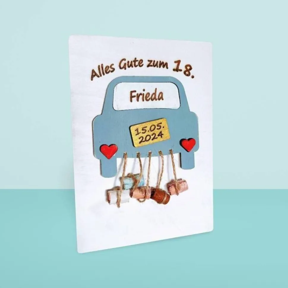 Eine handgestaltete Holzkarte ist eine wundervolle Gelegenheit das Geldgeschenk ansprechend und originell zu verschenken und eine bleibende Erinnerung zu schaffen.