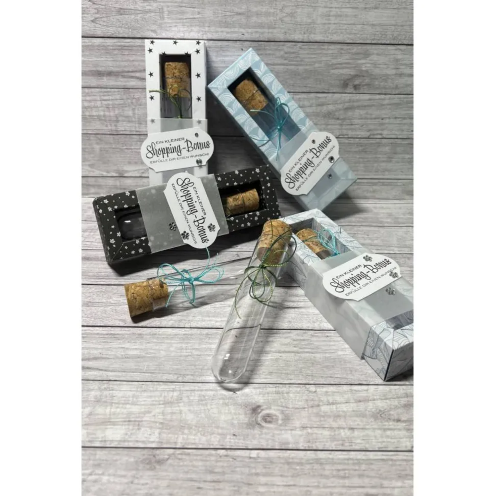 Dies ist eine schöne Idee um ein Geldgeschenk zu machen. Dazu den Geldschein aufrollen und in das Reagenzglas stecken und wieder mit dem Korken verschließen.