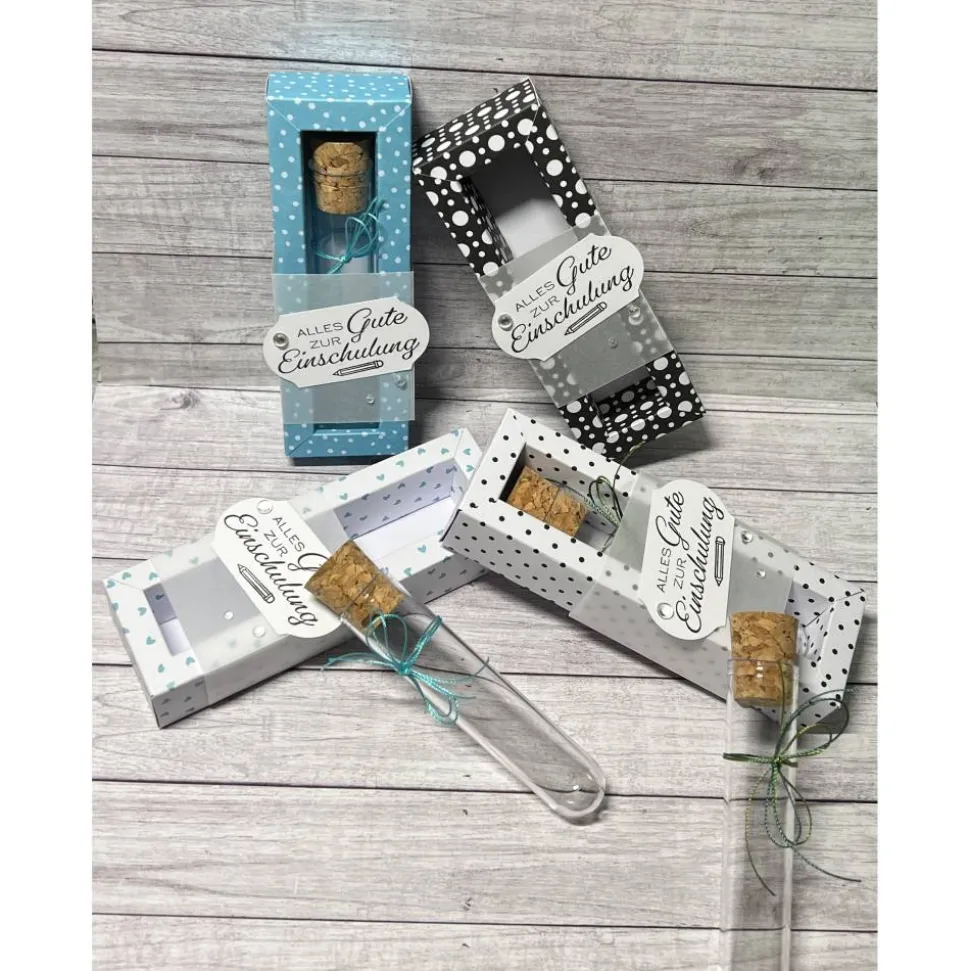 Dies ist eine schöne Idee um ein Geldgeschenk zu machen. Dazu den Geldschein aufrollen und in das Reagenzglas stecken und wieder mit dem Korken verschließen.