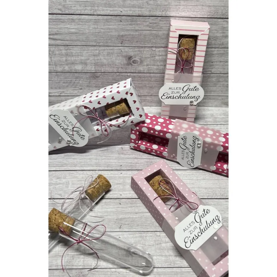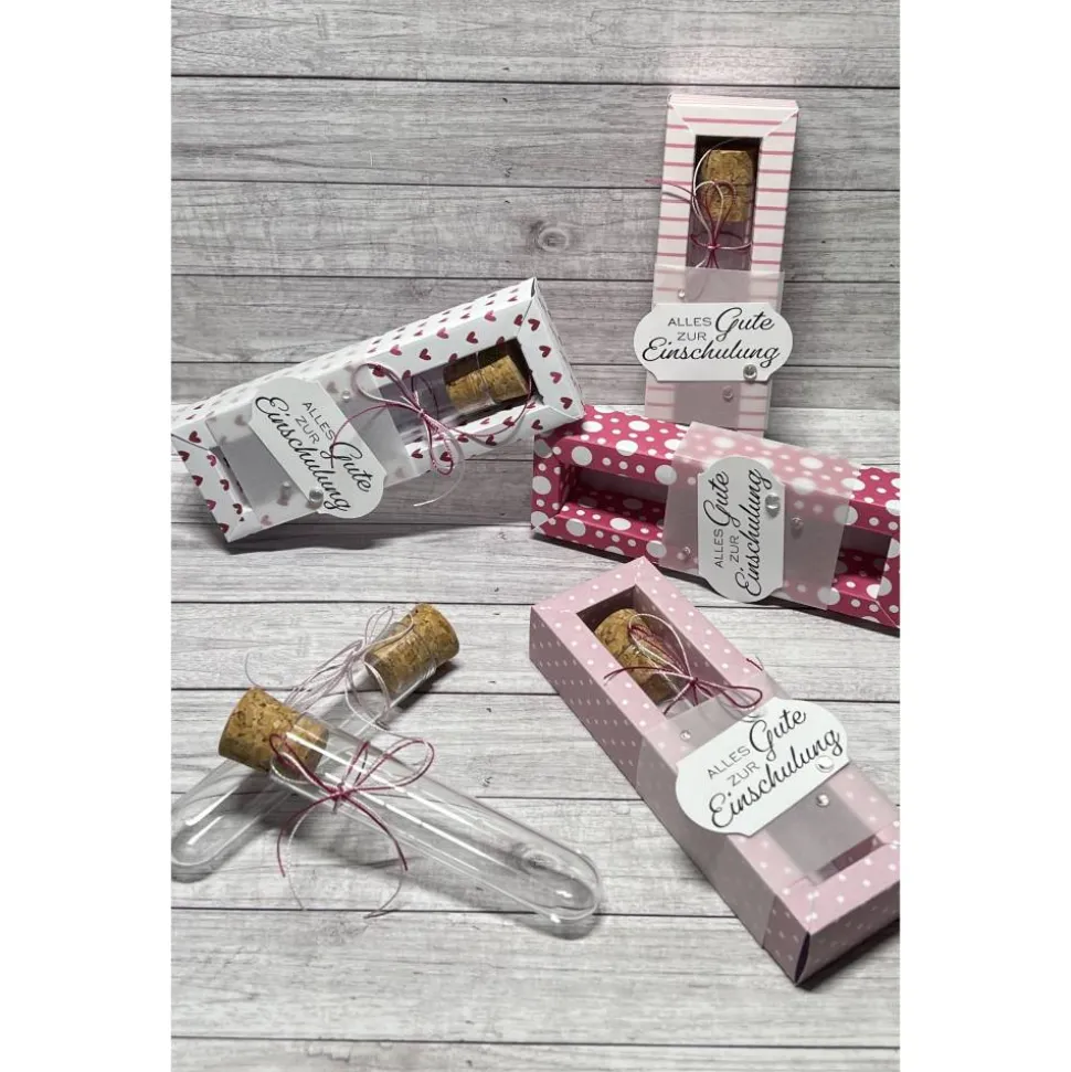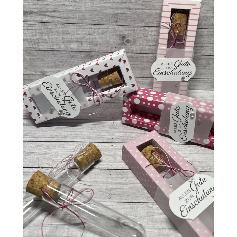 Dies ist eine schöne Idee um ein Geldgeschenk zu machen. Dazu den Geldschein aufrollen und in das Reagenzglas stecken und wieder mit dem Korken verschließen.