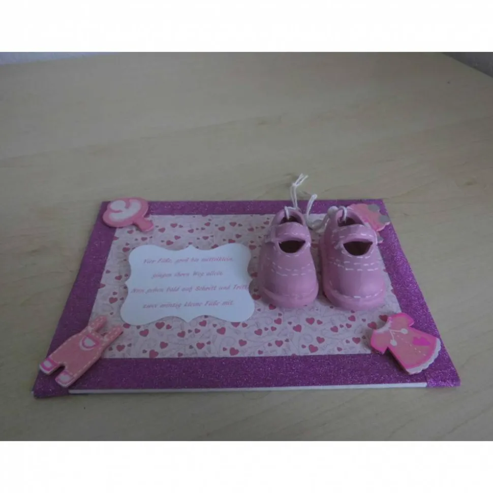 Die Basis bildet ein Leinwandkarton in der Größe 18 x 13 cm, der mit hochwertigem Motivpapier und passenden Deko-Klebestreifen am Rand veredelt wurde. Passende Dekoelemente setzen verspielte Akzente und machen dein Präsent einzigartig. Die niedlichen Kinderschuhe lassen sich mit Geldscheinen oder persönlichen Texten befüllen und sorgen für ein unvergessliches Geschenk zur Geburt oder Taufe.