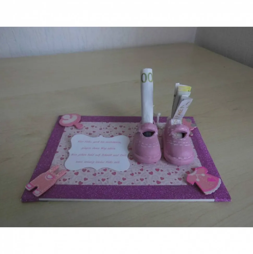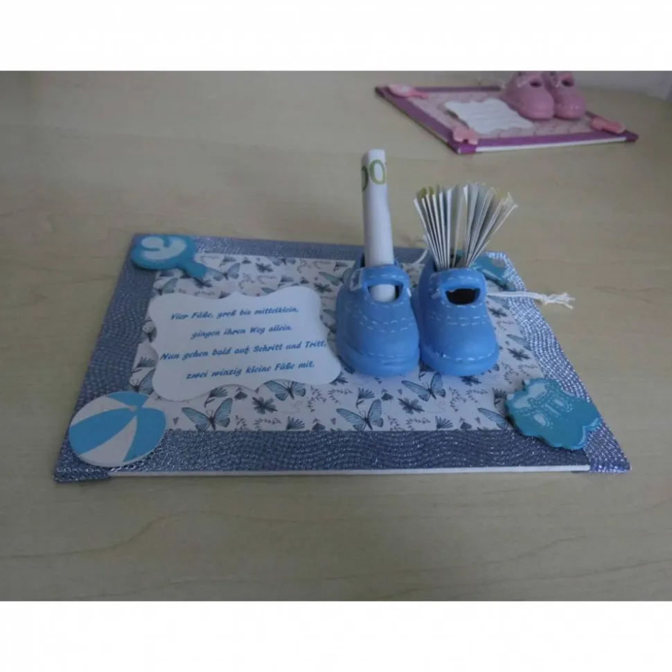 Überrasche zur Geburt oder Taufe mit einem ganz besonderen Geldgeschenk: Diese liebevoll gestaltete Geschenkdeko mit kleinen Kinderschuhen in Blau oder Rosa ist ein echter Hingucker für Jungen und Mädchen. Wähle deine Wunschfarbe und verpacke Geldscheine oder persönliche Botschaften kreativ und stilvoll.