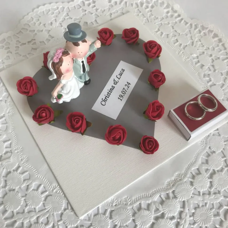 Mit diesem Geldgeschenk zur Hochzeit können Sie ganz ohne Glas und Bilderrahmen Geld verschenken. Kreative Ideen zum verpacken von Flittergeld für die Flitterwochen oder eine Reise gibt es wie Sand am Meer. Bei diesem Geschenk für das Brautpaar ist es möglich, ein ganz individuelles Erinnerungsstück zu schaffen. Denn mit dem Wunschtext können beispielsweise die Namen des Ehepaares oder auch das Hochzeitsdatum personalisiert werden. In der mit Ringen hübsch dekorierten Geschenkbox lässt sich das Hochzeitsgeschenk einfach verpacken. So kann ein Wunsch des Brautpaares erfüllt werden.