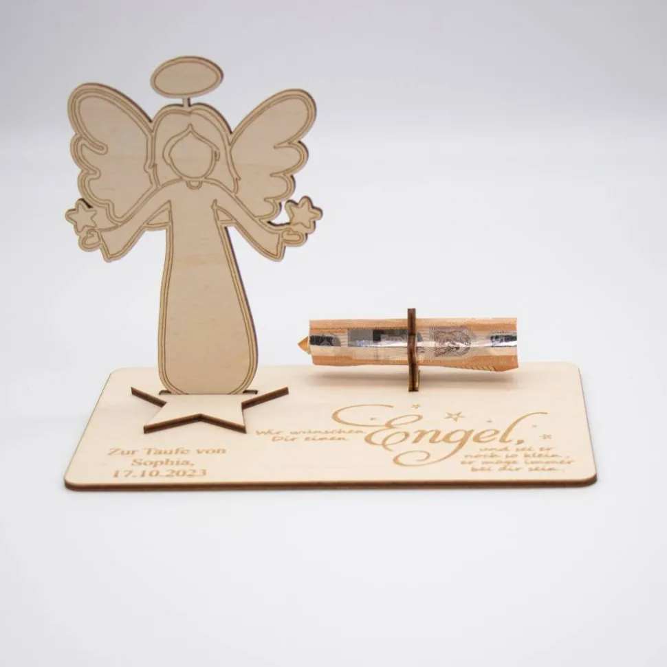 Geldgeschenk zur Taufe - aus Holz personalisiert