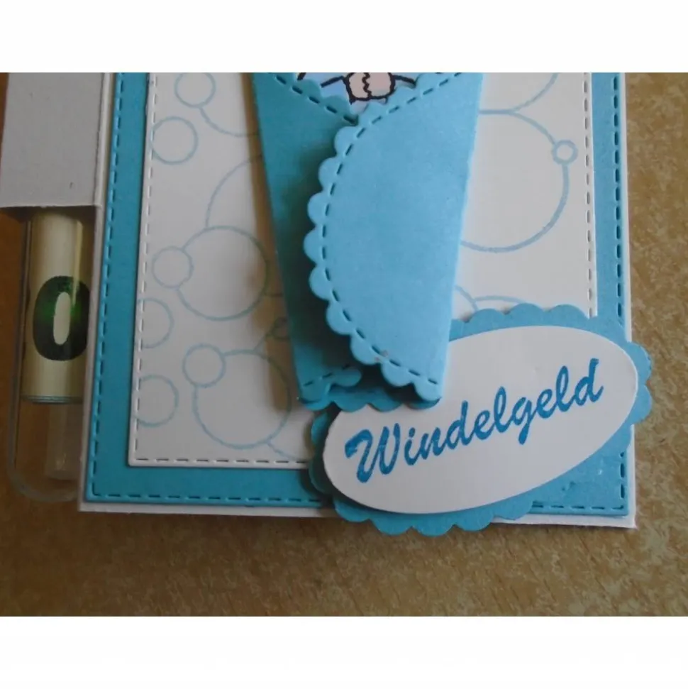 Verziert wurde diese Geldkarte zur Taufe Geburt Junge ein Reagenzglas,stanzer,Stempel Windelgeld..