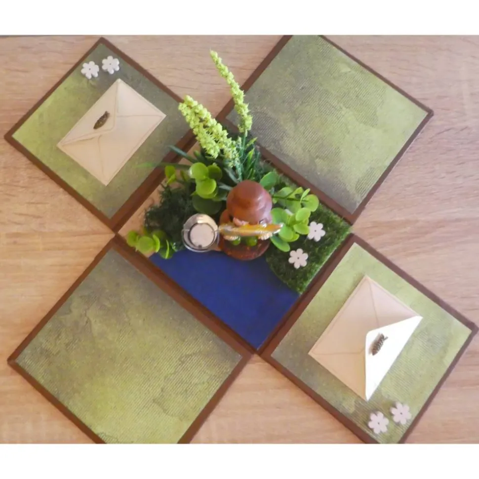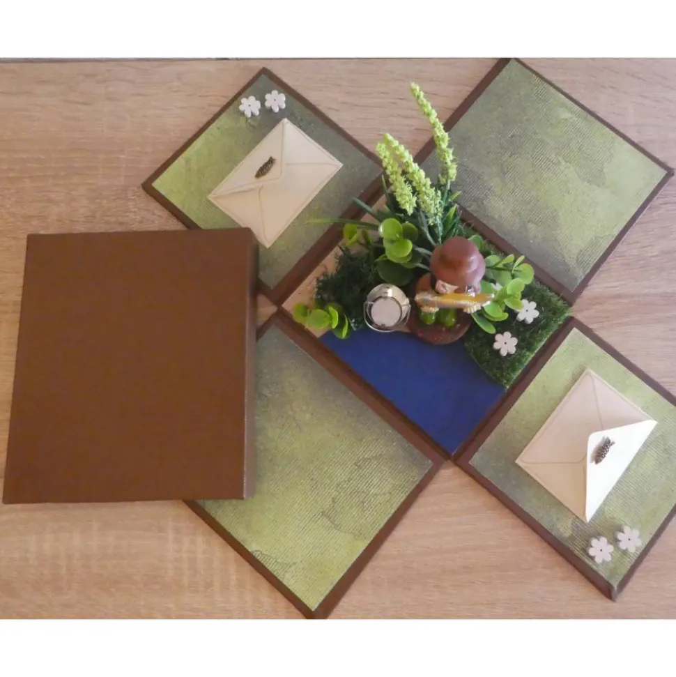 Die Geschenkverpackung mit Überraschungseffekt wurde von mir in liebevoller Handarbeit hergestellt. Die Seitenteile werden durch den Deckel gehalten. Wenn man den Deckel abnimmt klappt die Verpackung auf und ein Angler mit Verzierungen wird sichtbar. Das Geld kann in den kleinen Umschlägen, die links und rechts auf den Seitenteilen befestigt sind verstaut werden.