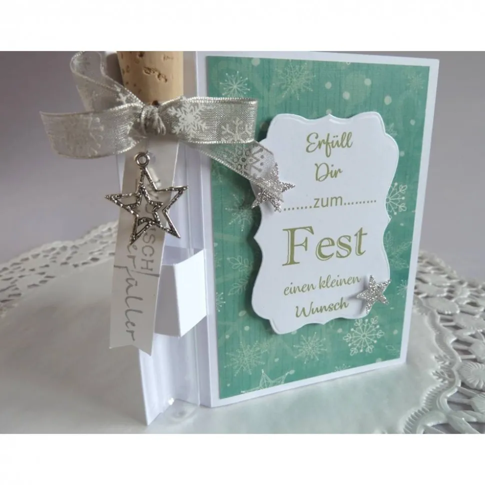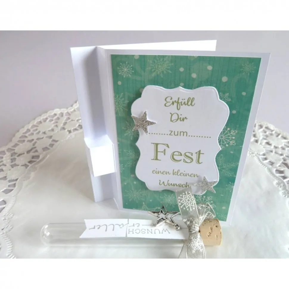 Designpapier, Papier, Reagenzröhrchen aus Kunststoff, silberfarbenes Sternchen, Organzaband, Glitzerpapier