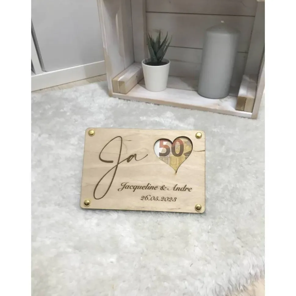 Holz ist ein Naturprodukt. Aufgrund der Maserung und der Äste unterscheidet sich jeder Artikel ein bisschen. Außerdem kann durch das Holz die Gravur manchmal dunkler oder auch heller ausfallen.