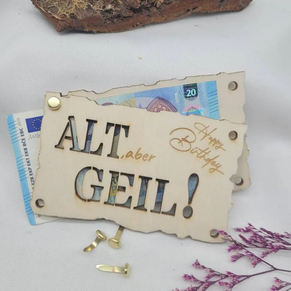 Feiern Sie das Alter mit Stil und Humor dank der „Alt,aber GEIL“ Geldkarte aus Holz. Verschenken Sie Geld mit einer Prise Spaß und zeigen Sie Ihre Wertschätzung auf originelle Weise. Lachen Sie gemeinsam über das Alter und schaffen Sie unvergessliche Momente voller Freude.
