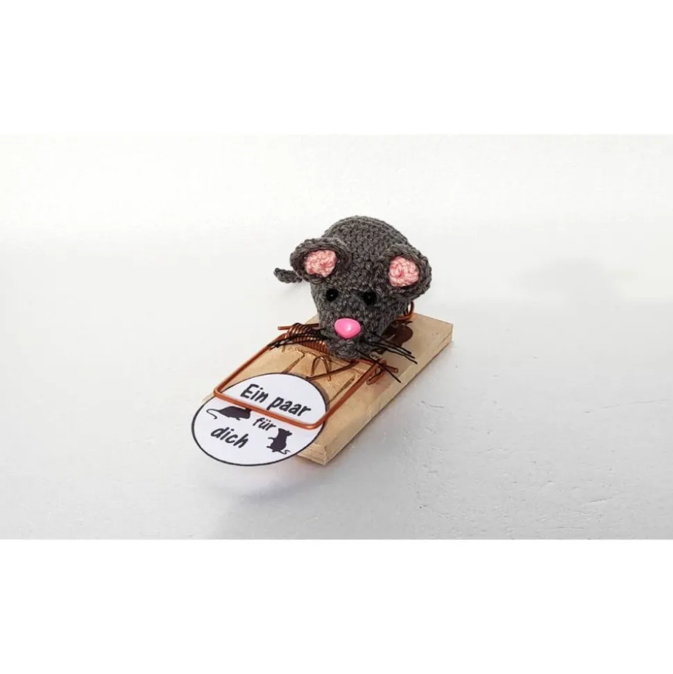 Die Maus wird aus 100 % Baumwolle gehäkelt, mit Füllwatte gefüllt, mit Kunststoffaugen und Nase.