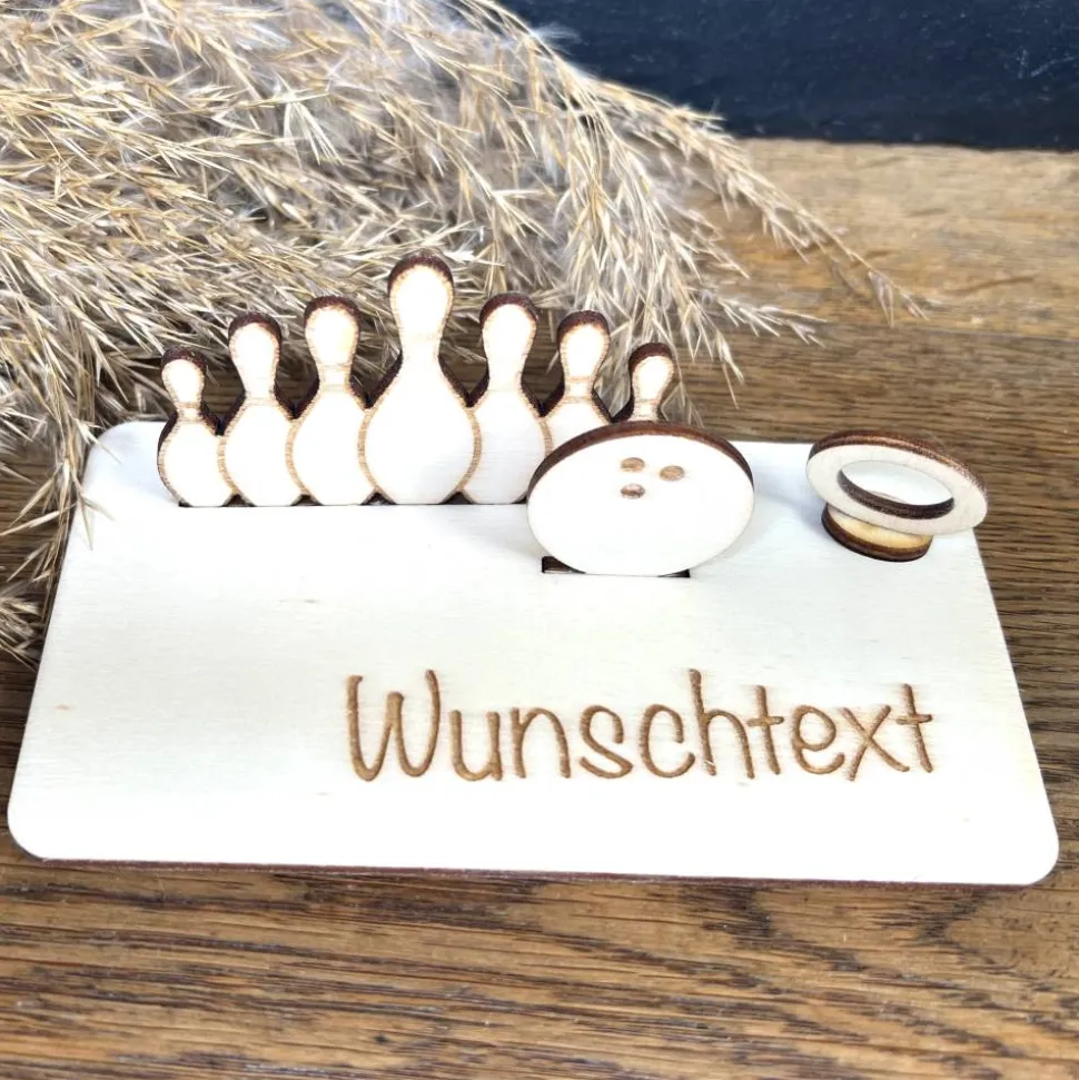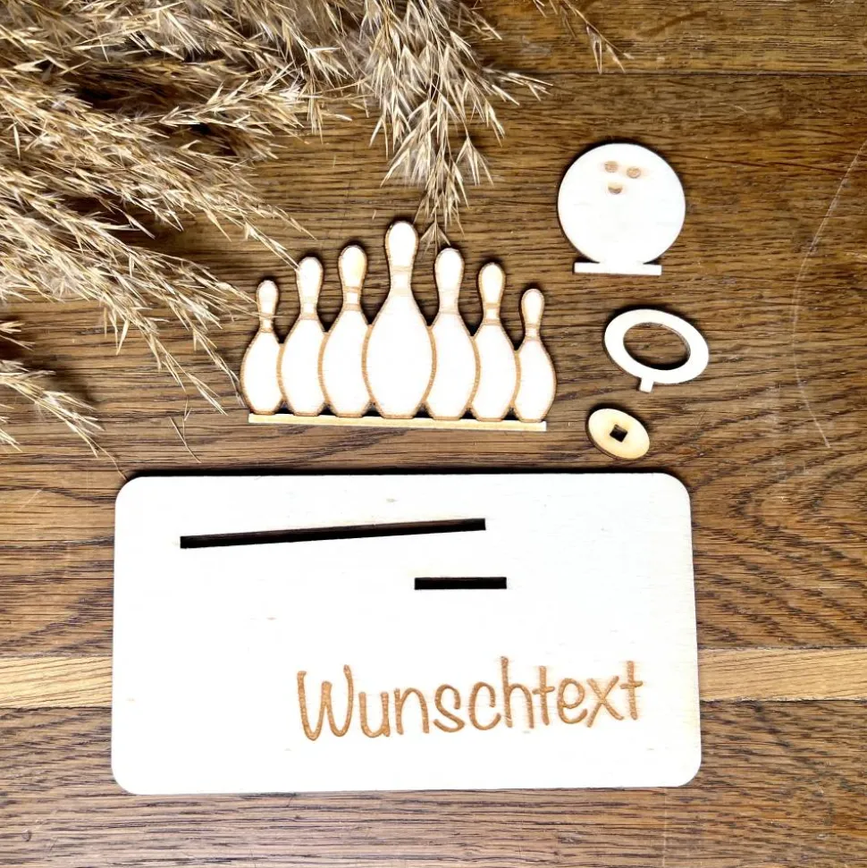 Hier kommt dein perfektes Geschenk für Bowling-Fans: Ein liebevoll gefertigtes Holzmotiv rund ums Bowling, das Deinen Geldschein stilvoll präsentiert. So verschenkst Du nicht einfach nur Geld, sondern ein originelles Andenken, das garantiert für Freude sorgt. Ideal, wenn Du kreativ schenken möchtest!
