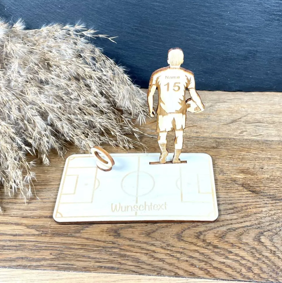 Für echte Fußballfans! Dieser aus Holz gefertigte Fußballspieler ist eine originelle Möglichkeit, einen Geldschein sportlich zu verschenken. Das Highlight: Die Trikotnummer ist personalisierbar und macht Dein Geschenk einzigartig. Liebevoll gestaltet und mit viel Detail, eignet sich dieses Präsent perfekt für Spieler, Fans oder besondere Fußballmomente.