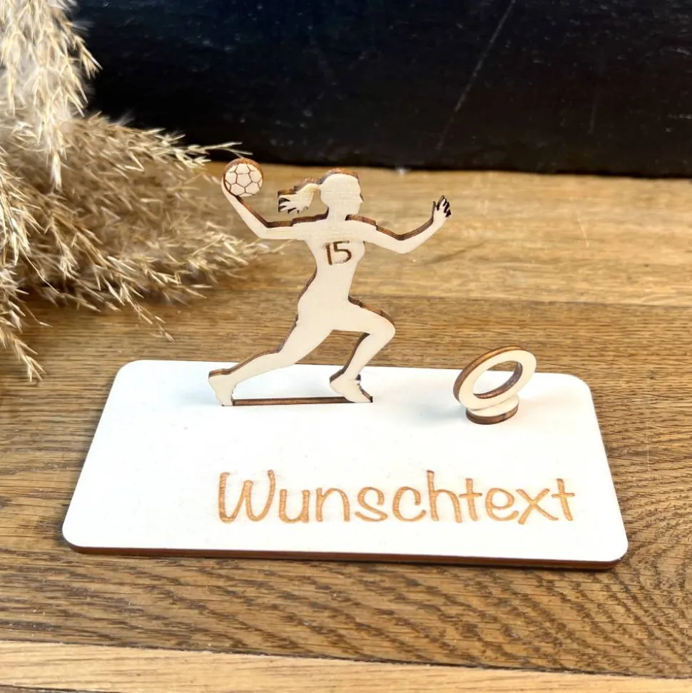 Für echte Handballfans! Diese aus Holz gefertigte Handball-Feldspielerin ist eine kreative und persönliche Möglichkeit, einen Geldschein zu verschenken. Name und Trikotnummer sind personalisierbar und machen Dein Geschenk einzigartig. Liebevoll gestaltet und detailreich gearbeitet, ist sie ideal für Spielerinnen, Fans oder Trainer – sportlich, individuell und mit Herz.