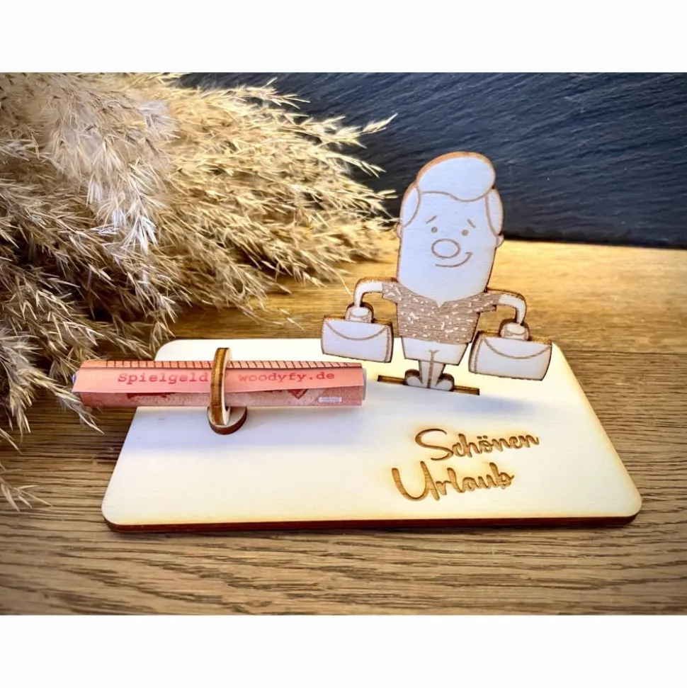Der Geldscheinhalter besteht aus mehreren Teilen, die zusammengesteckt und verklebt werden. Der Geldscheinhalter kann mit Acrylfarben oder Poscastiften bemalt werden.