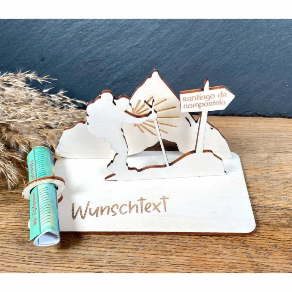 Der Geldscheinhalter besteht aus mehreren Teilen, die zusammengesteckt und verklebt werden. Der Geldscheinhalter kann mit Acrylfarben oder Poscastiften bemalt werden.
