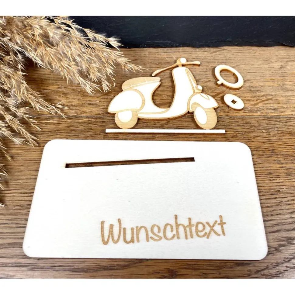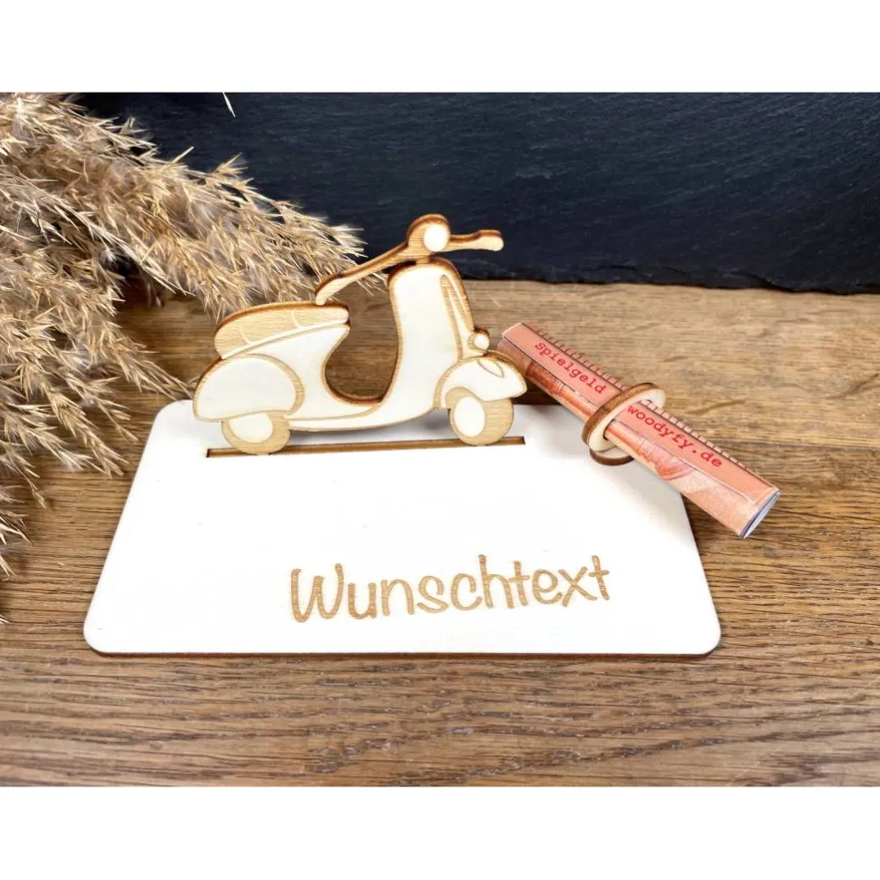 Hol dir das italienische Lebensgefühl nach Hause! Mit diesem handgefertigten Holz-Roller im Retro-Look verschenkst du nicht nur Geld, sondern echte Urlaubsgefühle. Schiebe deinen Geldschein einfach in den vorgesehenen Geldring und fertig ist die stilvolle Finanzspritze für den nächsten Städtetrip oder die eigene Vespa. Ein Muss für Fans von Dolce Vita!