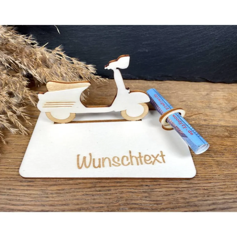 Hol dir das Dolce Vita nach Hause! Diese charmante Vespa aus Holz ist die perfekte Verpackung für dein Geldgeschenk. Egal ob für den nächsten Italien-Urlaub, einen neuen Roller oder einfach als kleine Aufmerksamkeit – klemm den Geldschein einfach fest und verschenke pure Nostalgie. Ein handgefertigter Hingucker, der garantiert für Urlaubsflair sorgt!