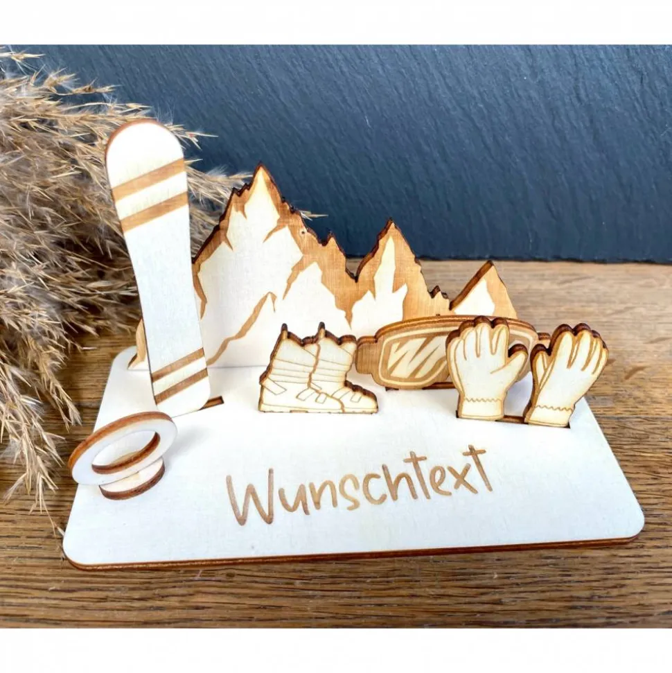 Geldscheinhalter Snowboardausrüstung, Snowboard, Skiurlaub, Berge, Winterurlaub, Geldgeschenk, Geschenk, Wunschtext, Per