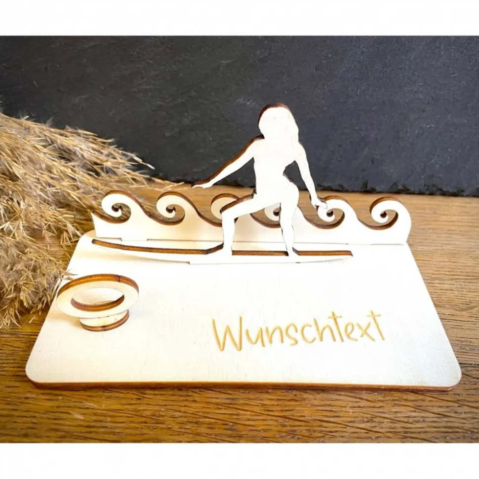 Geldscheinhalter Surfen, Surferin, Wasser, Urlaub, Geldgeschenk, Geburtstag, Geschenk, Wunschtext, Personalisierbar